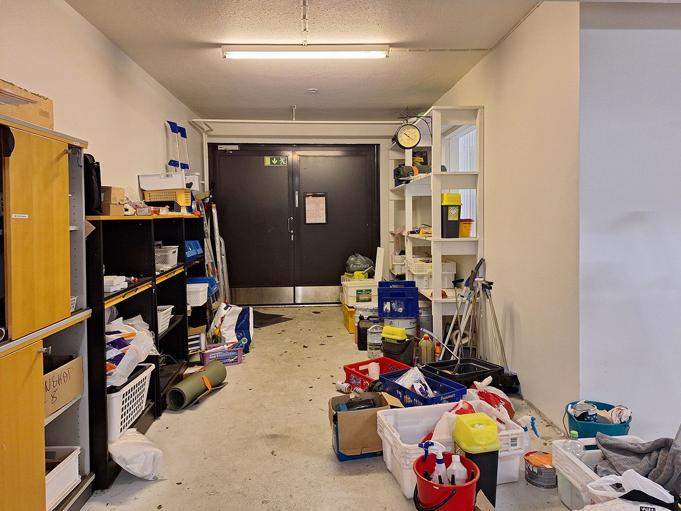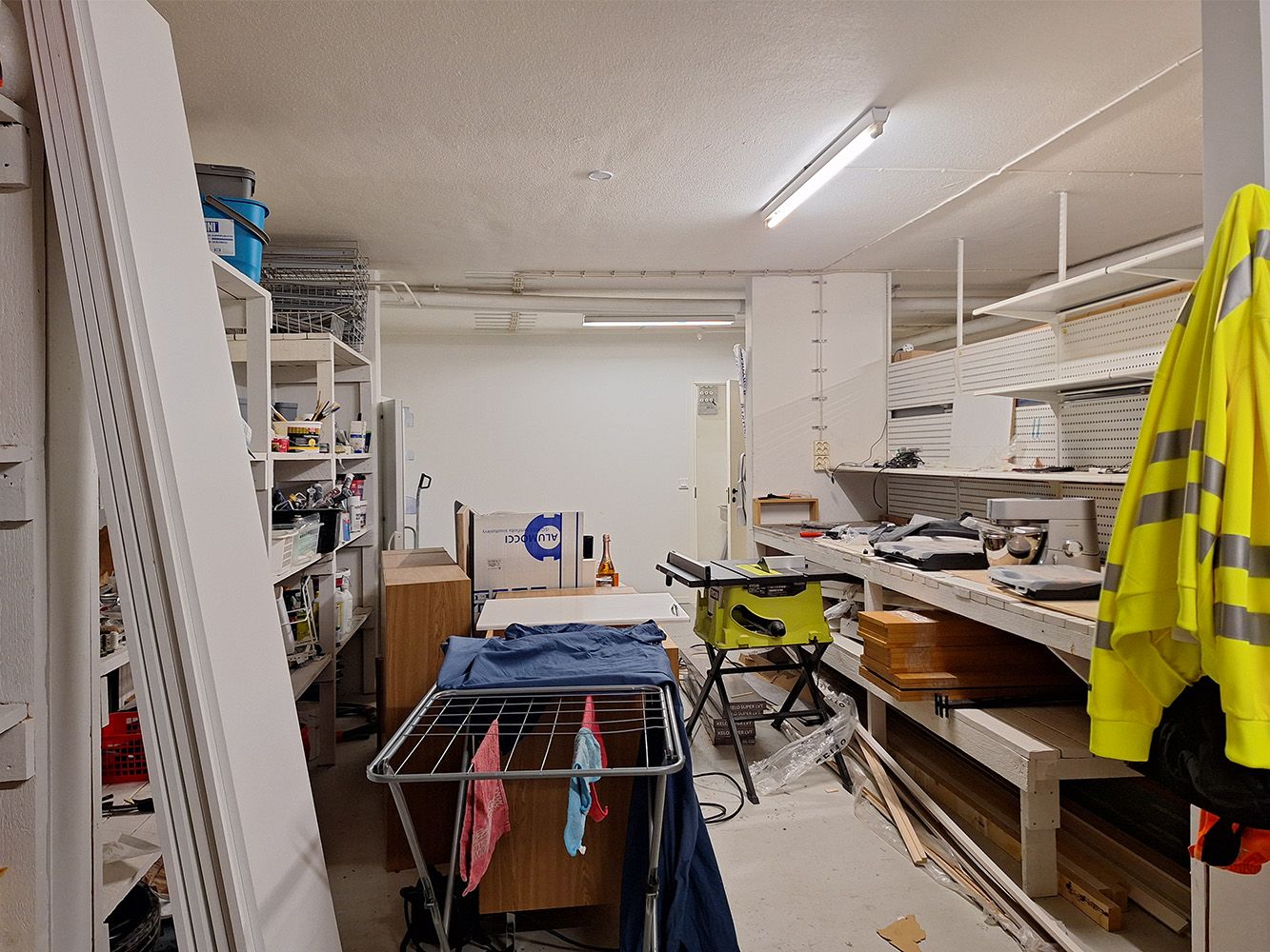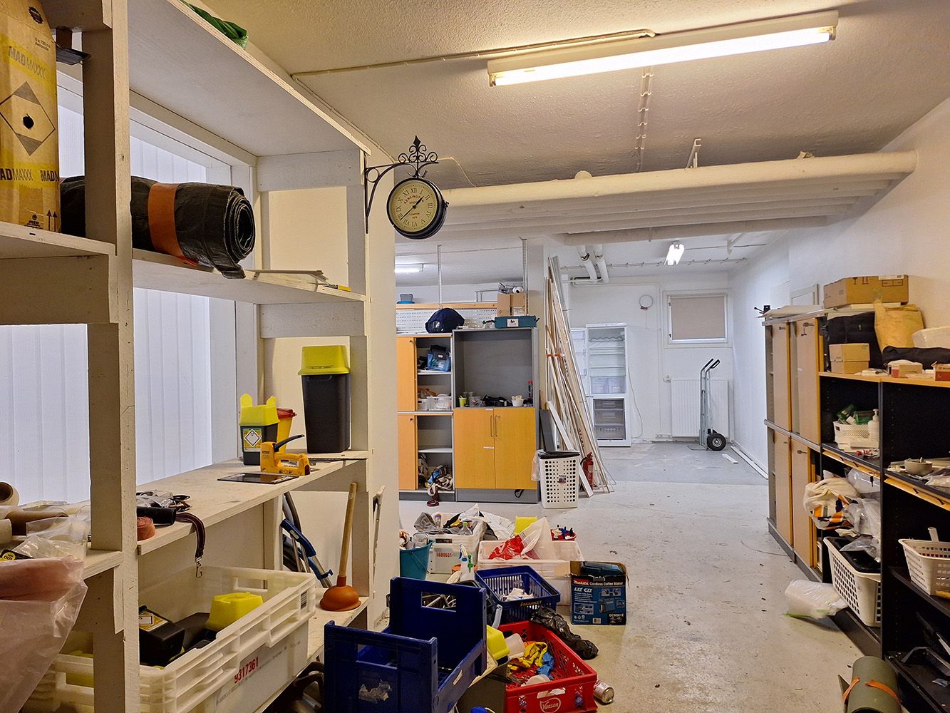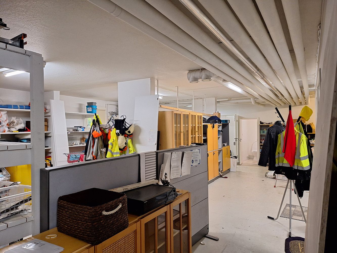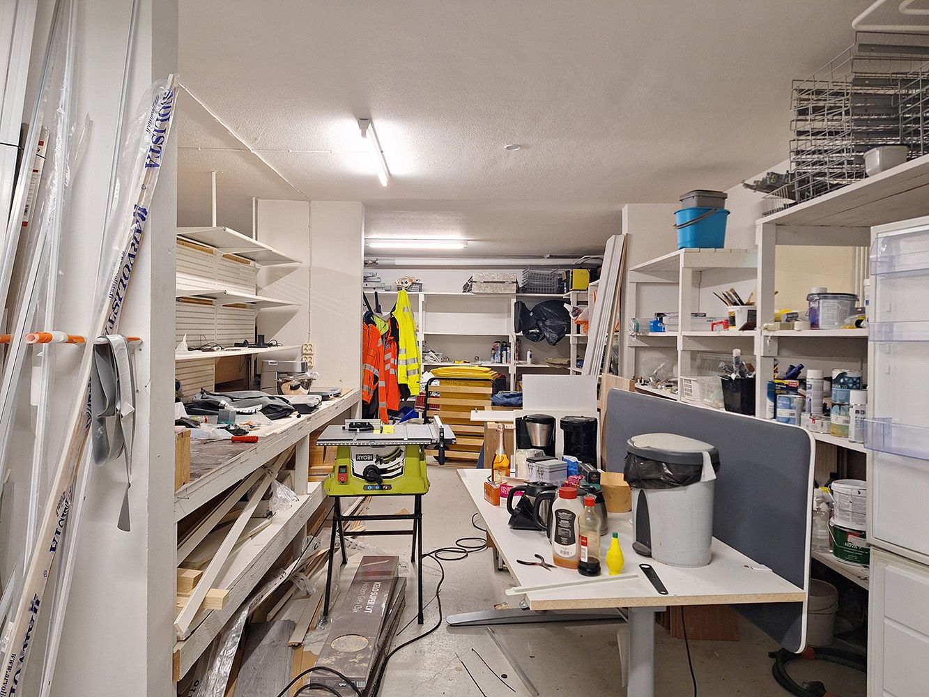 Huoneisto on noin 127-neliöinen ja sijaitsee asuinkerrostalon katutasossa. Tila on aikaisemmin toiminut yrityksen varasto- ja työtilana. Huoneistossa on kaksi toimistohuonetta (15 m² ja 12 m²) sekä avointa tilaa. Takaosassa on WC ja siivouskomero. Tilaan on katutasosta kaksi sisäänkäyntiä, josta toinen käynti on isoista pariovista ja toinen normaalista käyntiovesta. Molemmat sisäänkäynnit ovat rakennuksen etupihalta.