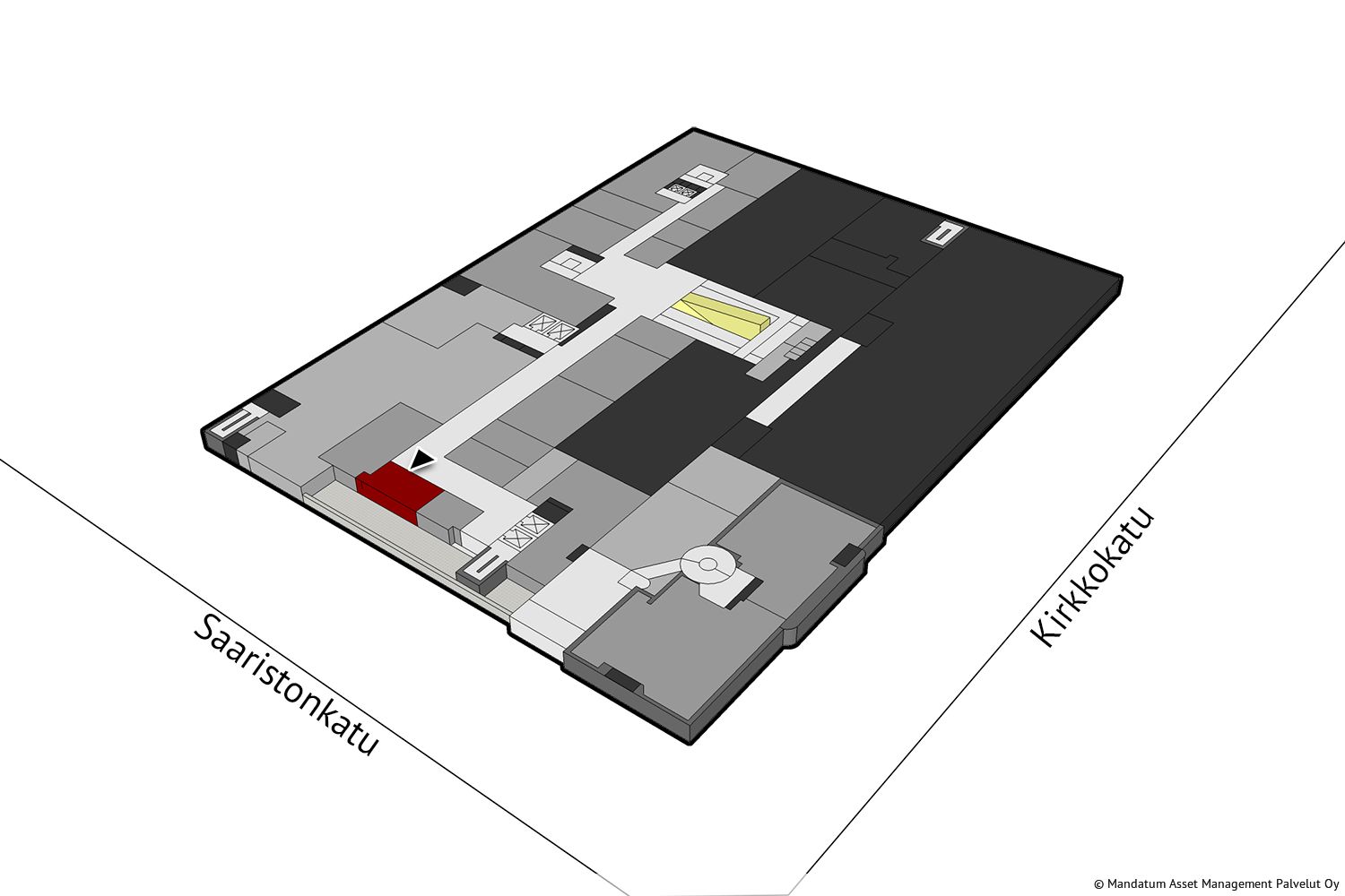 Vuokrattavana neljännen kerroksen vasta remontoitu tila, joka toiminut tähän saakka kabinettitilana. Toimii hyvin myös muutaman henkilön toimistotilana, esittelytilana tms. Tilassa ei ole omaa vesipistettä eikä WC:tä, Yhteiskäyttöiset WC-tilat sijaitsevat lähistöllä.