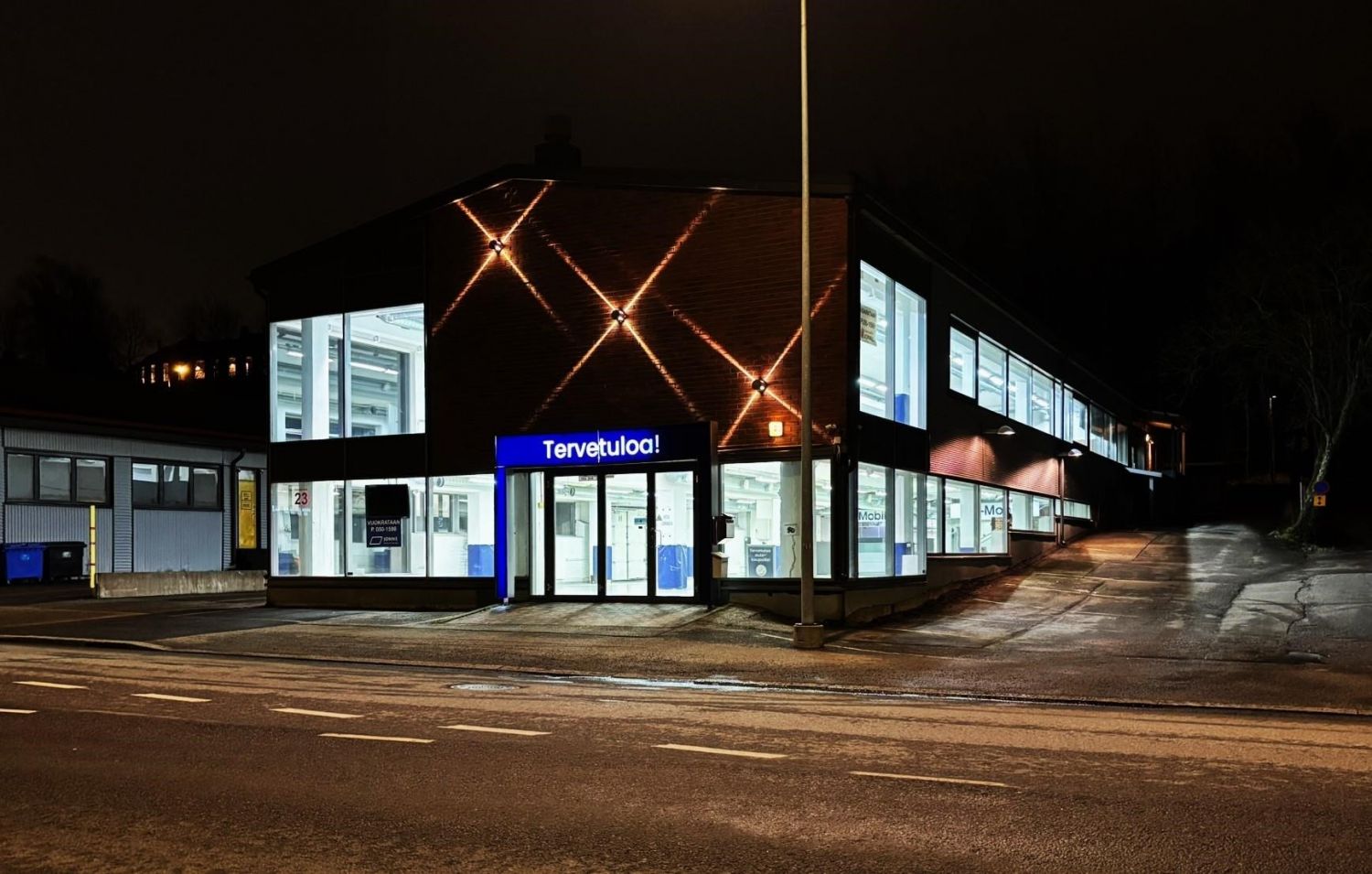 Tilat sisältävät mm. sosiaalitiloja, saunaosaston, autonpesupisteen öljynerotuskaivolla,