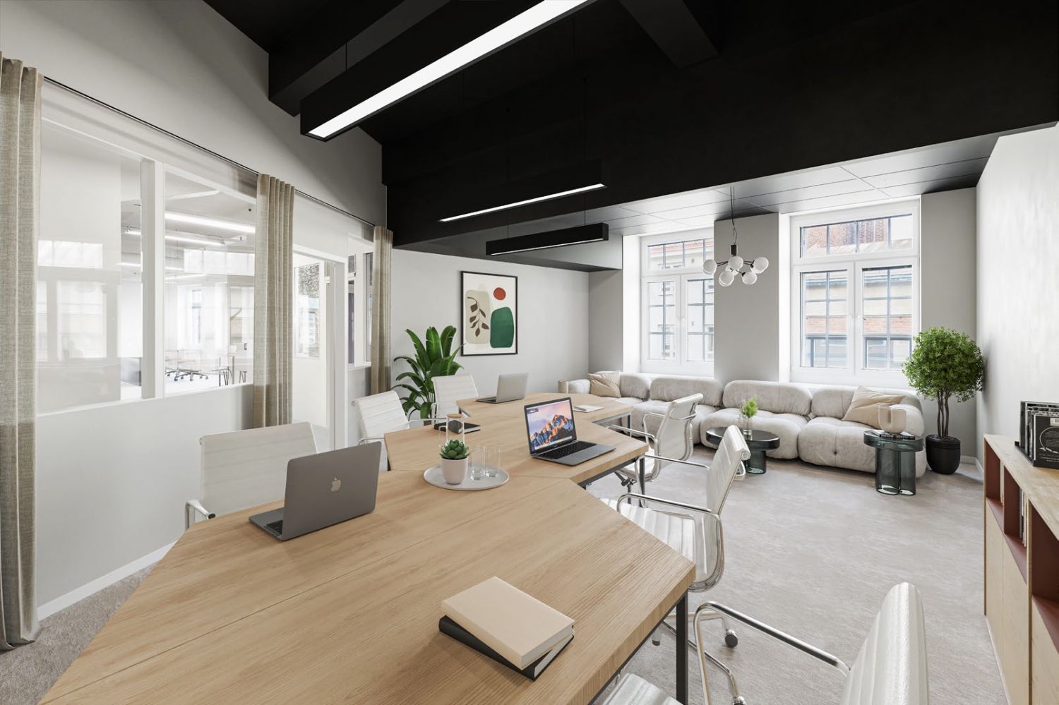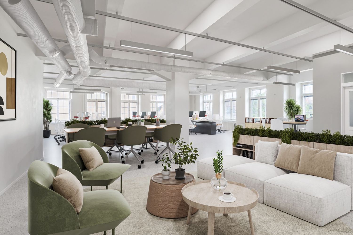 Vuokrattavassa tilassa iso avotila, iso neuvotteluhuone ja kaksi erillistä huonetta. Huoneisto on talon kulmassa, joten valoa tulvii kahdesta eri ilmansuunnasta. Tilaan kuuluu oma erillinen keittiö ja saniteettitilat, jotka myös remontoitu tilan remontin yhteydessä. Huoneistoon pääsee sekä henkilö- että tavarahissillä