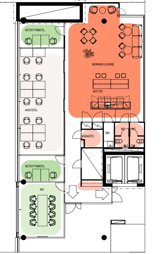 Vuokrattavana upeaa, täysin remontoitua, muuttovalmista toimistotilaa. Toimistossa on iso keittiölounge, työskentelytila, kaksi vetäytymistilaa, neuvottelutila, varasto, siivouskomero sekä kaksi wc:tä.
