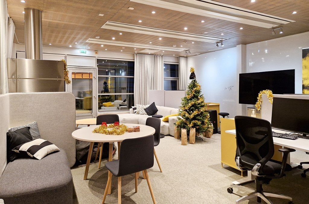 Tila koostuu avotilasta, toimistohuoneista, keittiöstä sekä omasta saunatilasta.