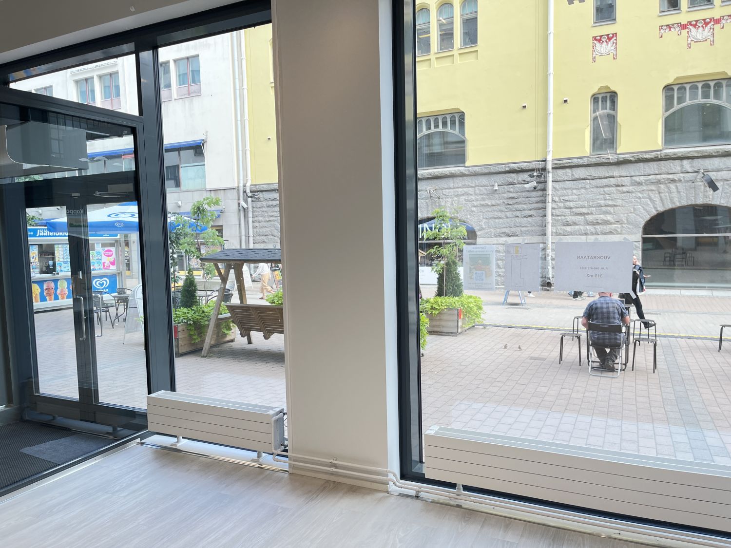 Tasokas liiketila yhdessä ydinkeskustan uusimmista kiinteistöistä! Soveltuu moneen eri käyttötarkoitukseen. Layout muodostuu avaran liiketilan lisäksi keittiö-taukotilasta, kahdesta pukuhuonetilasta wc- tiloineen ja suihkuineen. Lisäksi takatilasta löytyy myös varastotilaa. Näyteikkunat avautuvat Kuninkaankadun vilkkaalle kävelykatuosuudelle.