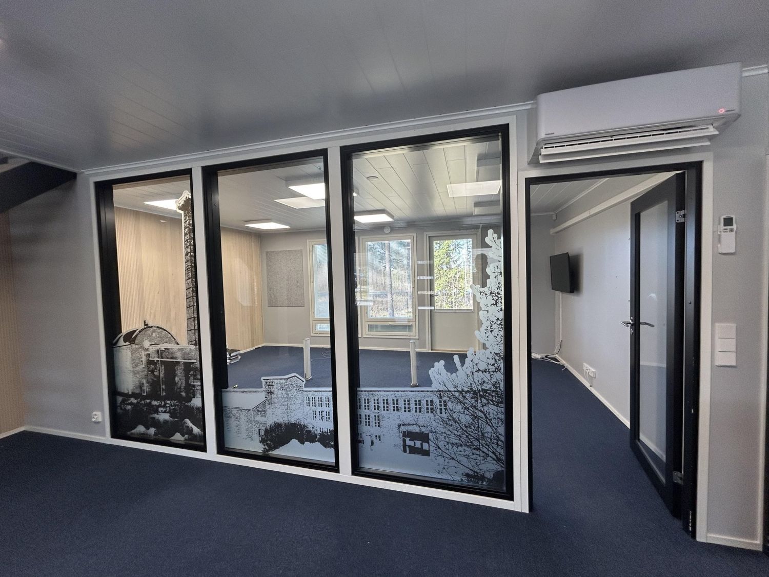 Kohteessa on kaksi erillistä toimistokokonaisuutta. Isompi kokonaisuus: Aulatila, 4 työhuonetta, neuvottelutila, wc-tilat, varasto. + yläkerrassa keittiö ja aulatila, sekä kaksi isoa varastotilaa.