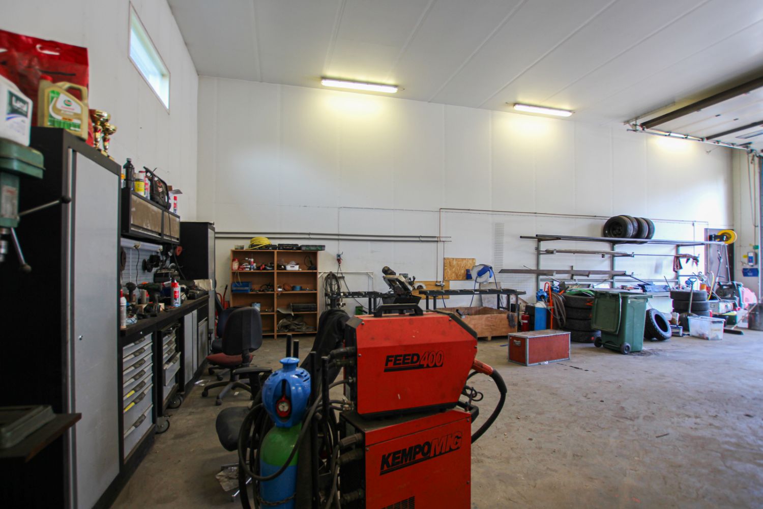 Vuokrattavan tilan pinta-ala noin 200 neliötä. Tilassa kaksi nosto-ovea, joiden mitat noin 3,9m x 4,4m. Lattiakaivot löytyy sekä erillinen wc-tila. Korkea hallitila, joka soveltuu moneen eri käyttöön. Hallitilan edessä hyvin paikoitustilaa ja isommallakin autolla mahtuu kääntymään. Vuokra 1100€+ alv 25,5%.