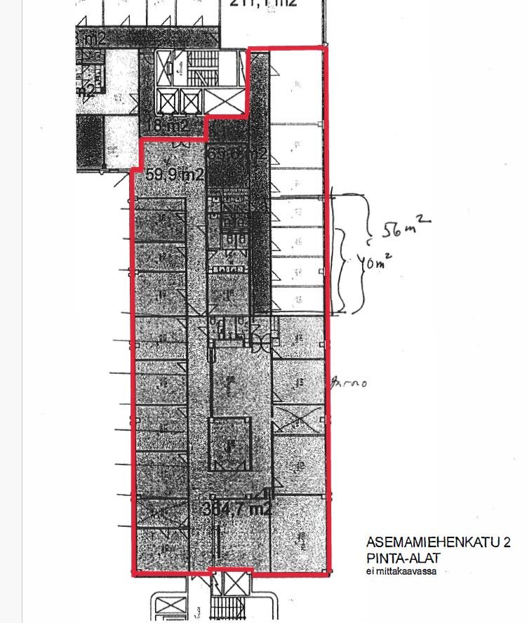 Vuokrataan 6 kerroksen 485m2 huonetoimisto, erinomaisella sijainnilla Itä-Pasilasta. Tilassa on iso keittiö ja ruokailutila, useita wc-tiloja ja paljon huoneita, sekä iso nevotteluhuone n. 20 henkilölle. Sisäänkäynti tilaan, pihatasanteen B ja C portaista. Vuokrattavana myös muutamia autohallipaikkoja.