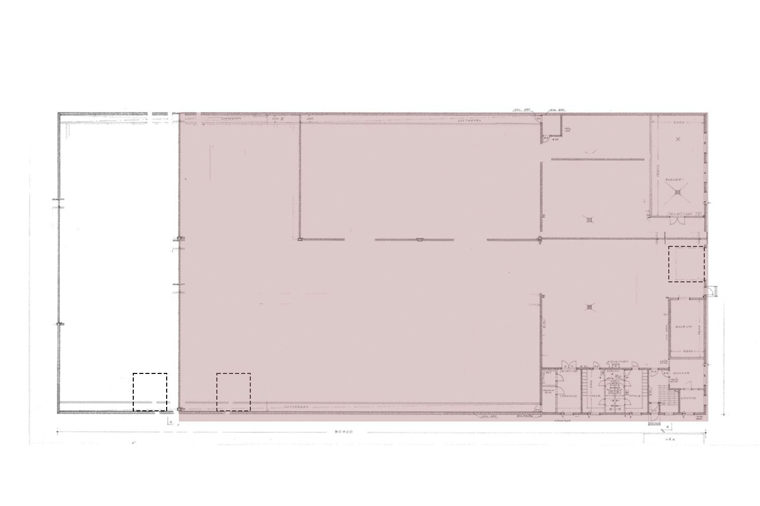 Pinta-alat: Halli sosiaalitiloineen 2700 m² (+ optio 560 m²)