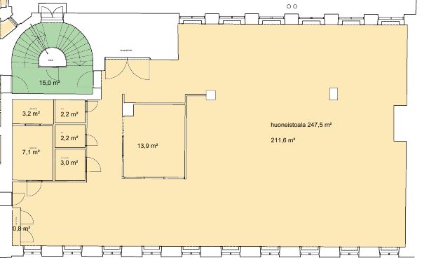 hyvällä sijainnilta Helsingin Töölöstä, toimisto-, showroom-tyyppistä tilaa n. 247 m2. Tilaan on myös yhdistettavissä viereinen n 270 m2 tila, jolloin kokonaistilan määrä olisi 517 m2.