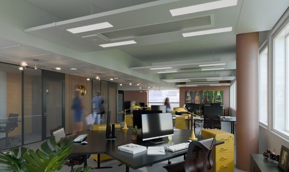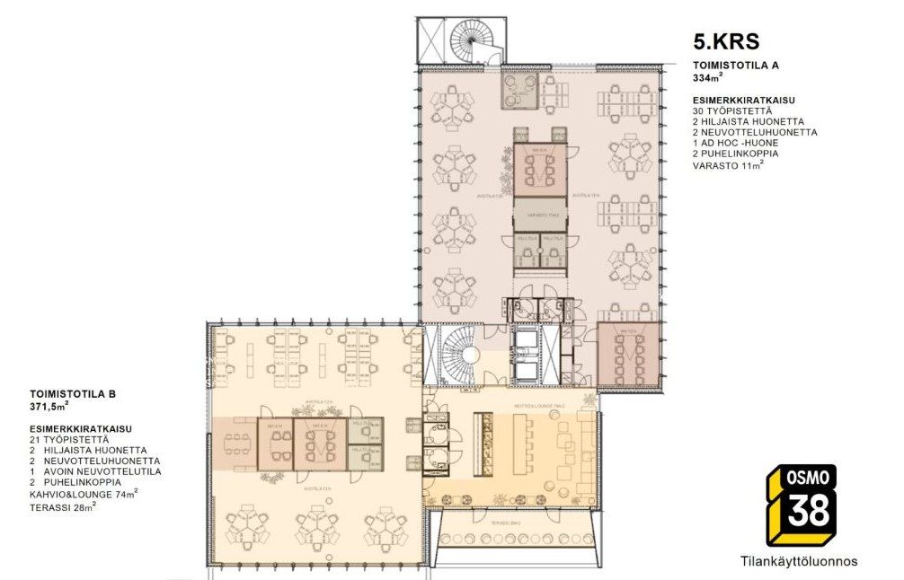 Toimistokokonaisuus on valoisa ja tarjoaa monipuoliset mahdollisuudet eri toimialojen yrityksille.