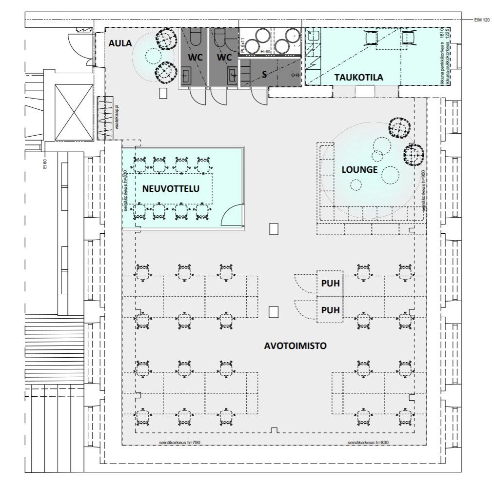 Vuokrattavana 173 m² siistiä toimistotilaa rakennuksen 4. kerroksessa.