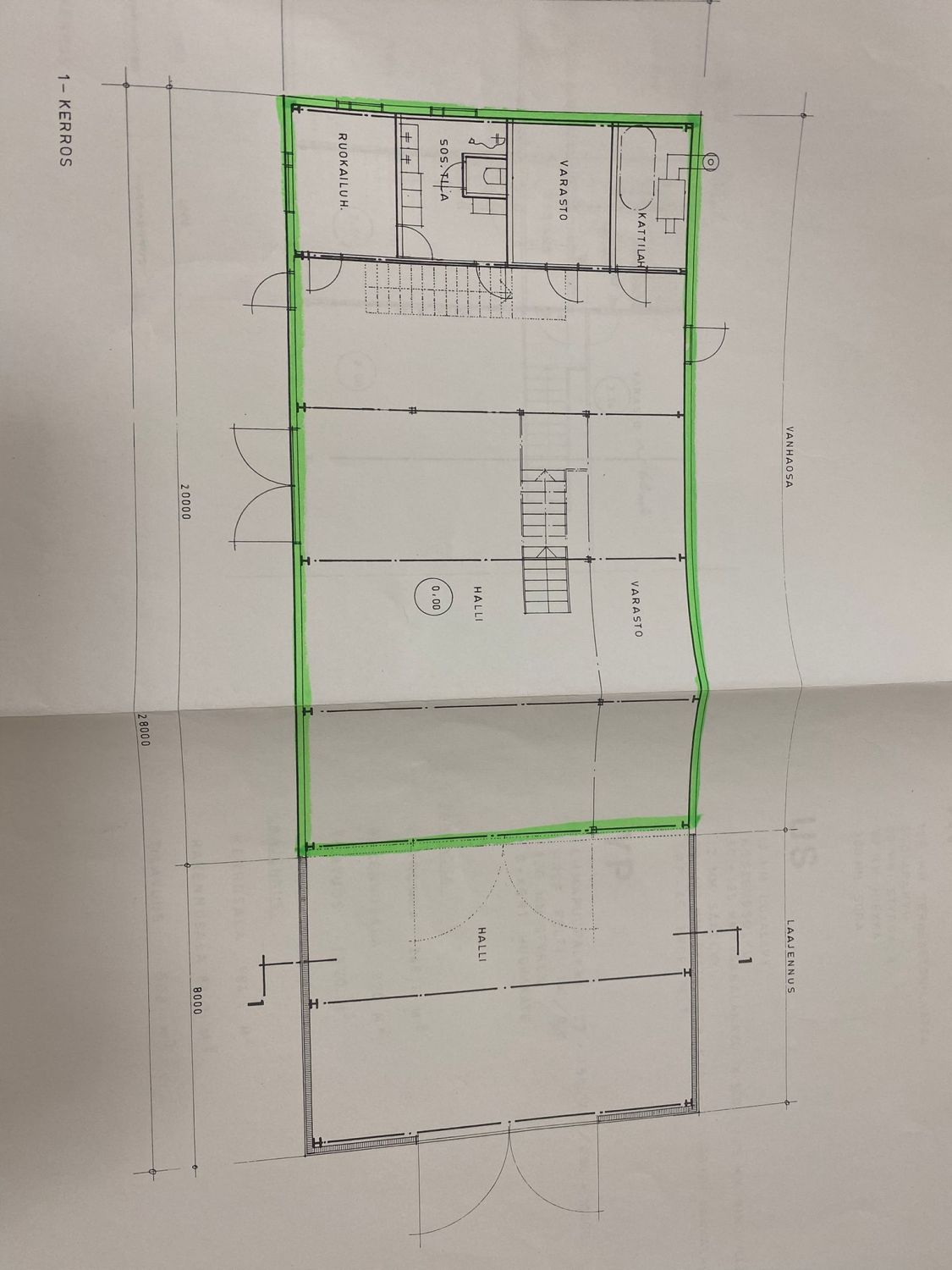 Pinta-ala: hallirakennus 290 m² + ulkovarasto 67 m²