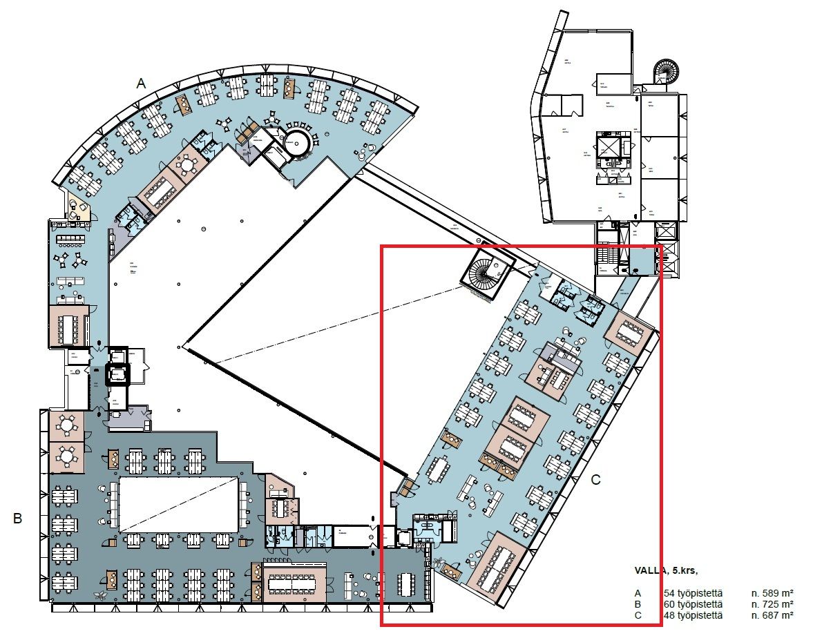 Vallassa tilat suunnitellaan aina yrityskohtaisesti – ei hukkaneliöitä, vaan juuri teidän työntekoanne tukevia ratkaisuja. Muuntojoustavat tilat mahdollistavat sekä keskittymisen että luovan yhteistyön.
