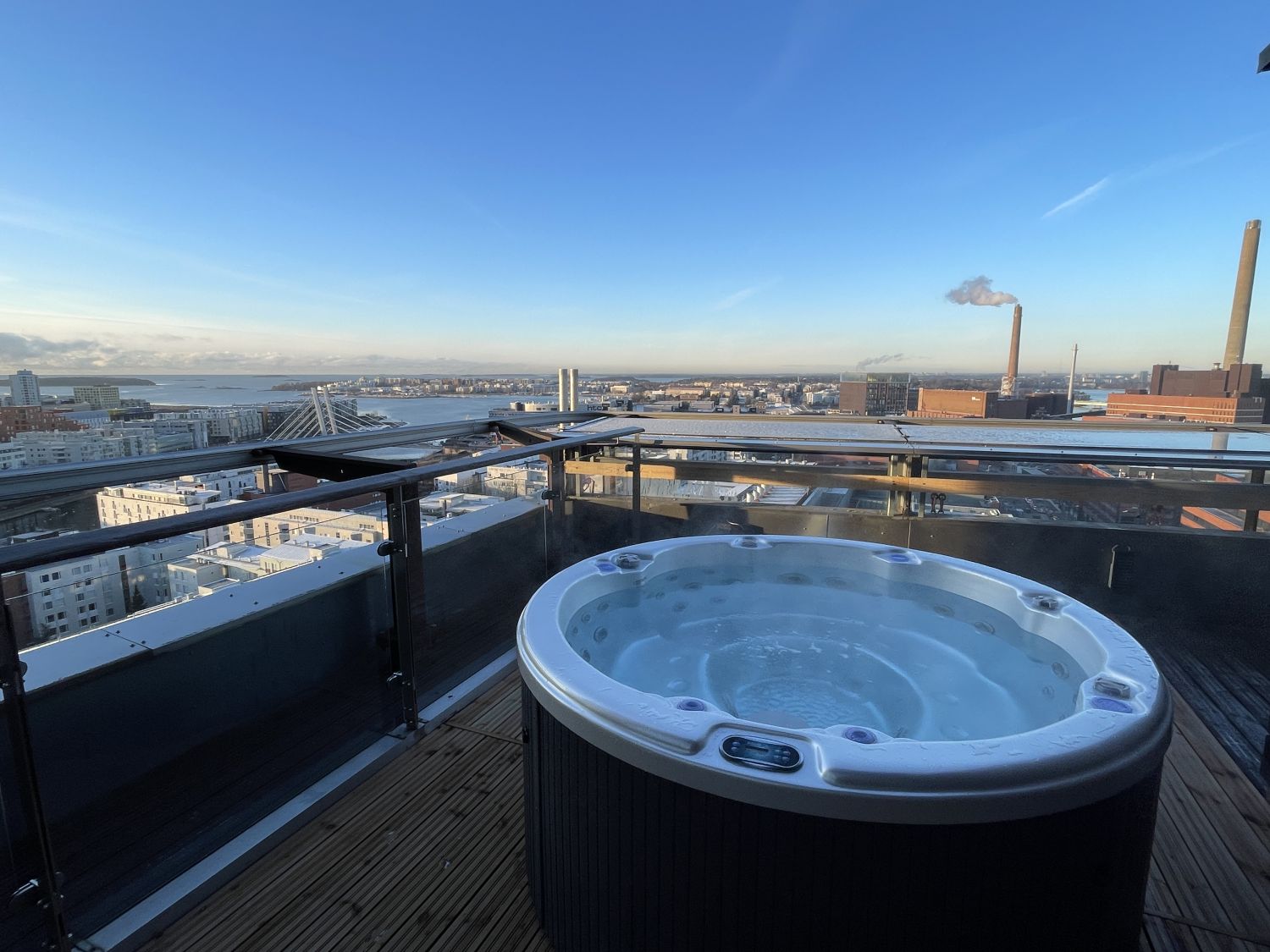 - Lounge-tilat ja sauna tornin ylimmässä kerroksessa