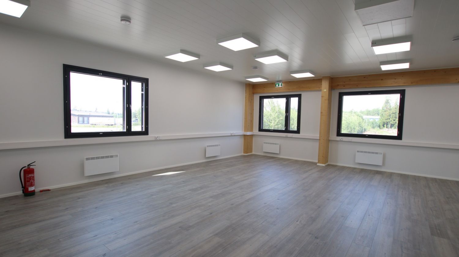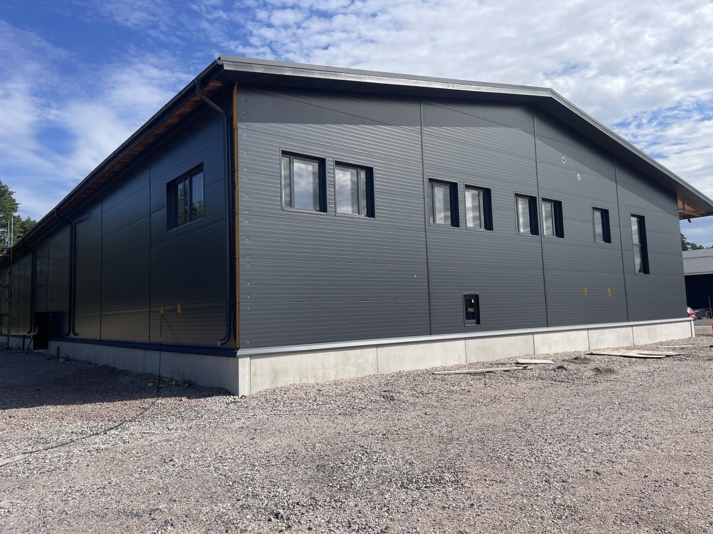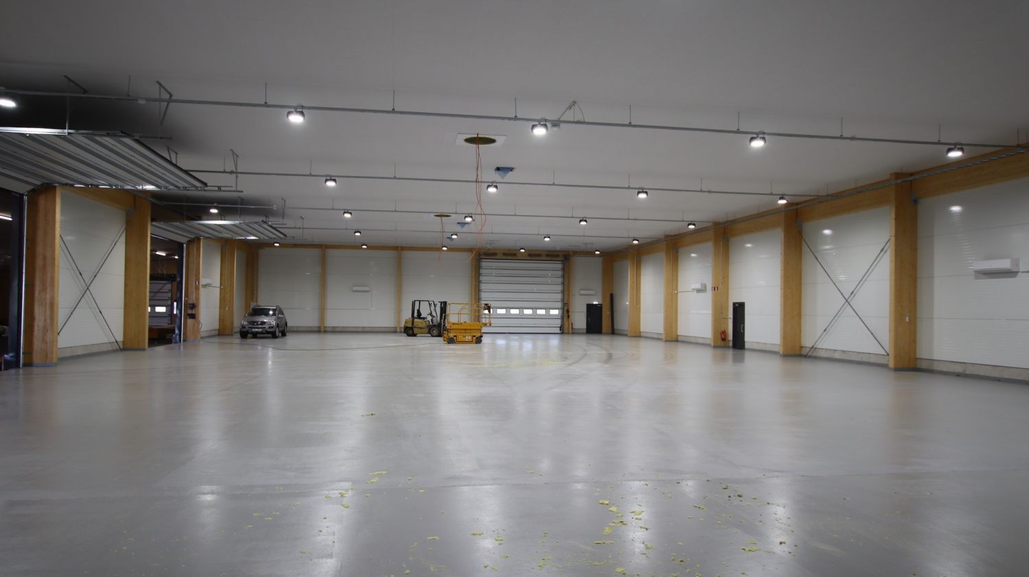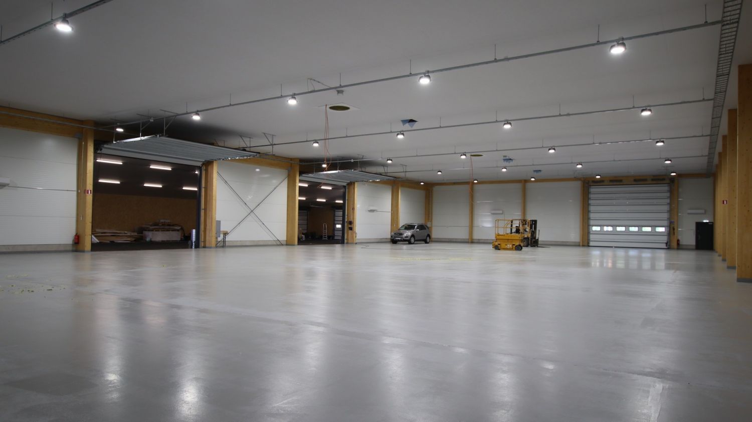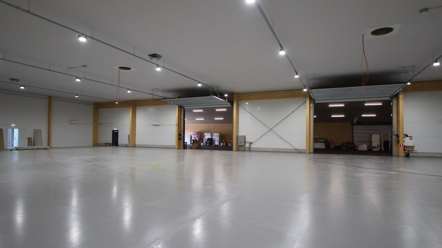 Tilakokonaisuus jossa 1 400m2 hallin lisäksi 300m2 toimisto- ja sosiaalitiloja kahdessa kerroksessa