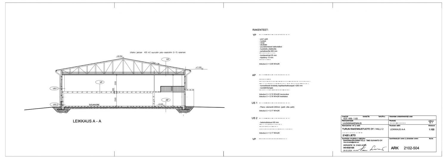Vuokrattavana noin 1 700 m2 varasto-tuotantotila, Tuulissuon teollisuus-alueella, osoitteessa Yrjönalhontie 7, Lieto.