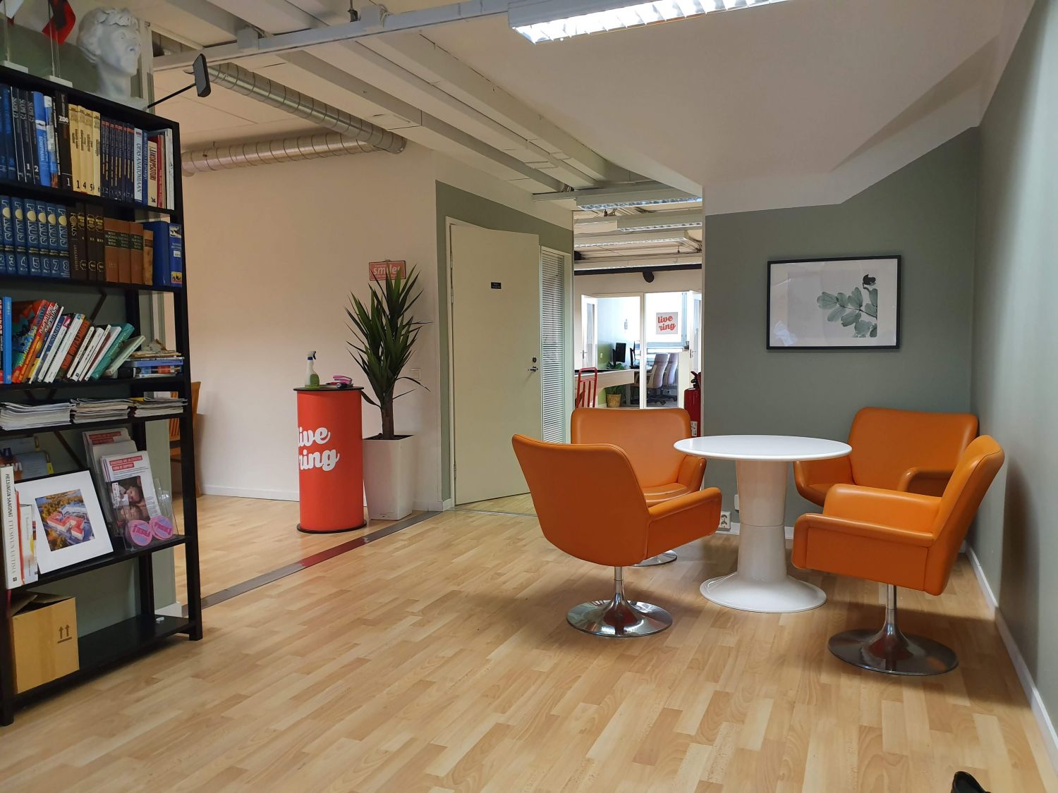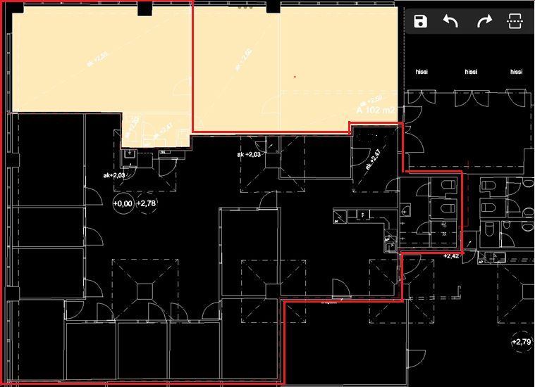Tilakokonaisuuteen sisältyy 5 erikokoista toimistohuonetta, neuvottelutila, 4 toimisto-/puhelutilaa (äänieristettyjä), reilun kokoinen ja hyvin varusteltu taukokeittiö, pari WC-tilaa ja suihku.