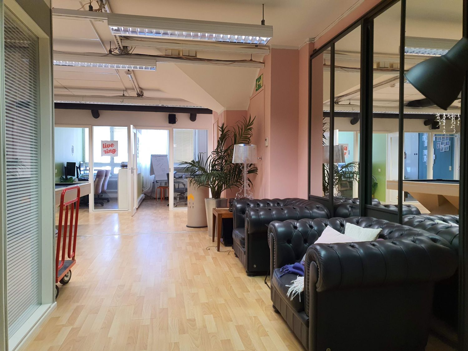 Tämä industrial-henkinen toimistotila sijaitsee rakennuksen 4. krs.
