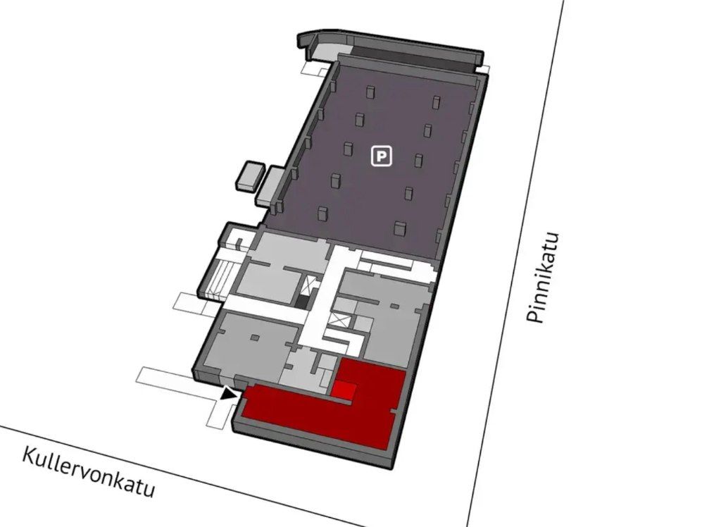 Sisäänkäynti tilaan on Pinninkadun puolelta. Tila soveltuu hyvin liiketilakäytön lisäksi hoitolaksi tai toimistoksikin. Tila ei sovellu ravintolakäyttöön.