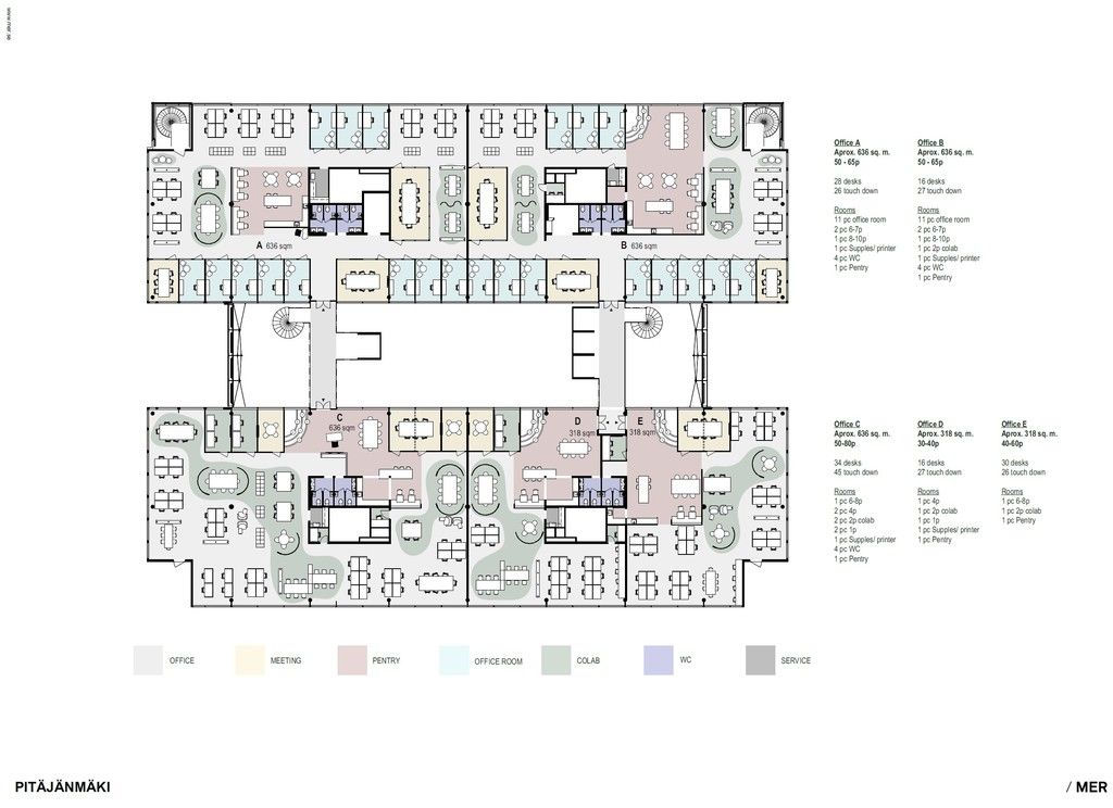 Tämä 1272 m² kokoinen toimistotila sijaitsee kiinteistön 4. kerroksessa. Toimistossa on sekä huoneita että avotilaa. Lisäksi toimistossa on omat sosiaalitilat. Tila on mahdollista jakaa 318 m² ja 636 m² kokoisiin osiin. Tilat remontoidaan uudelle vuokralaiselle. Kuvat ovat yleiskuvia kiinteistön tiloista.