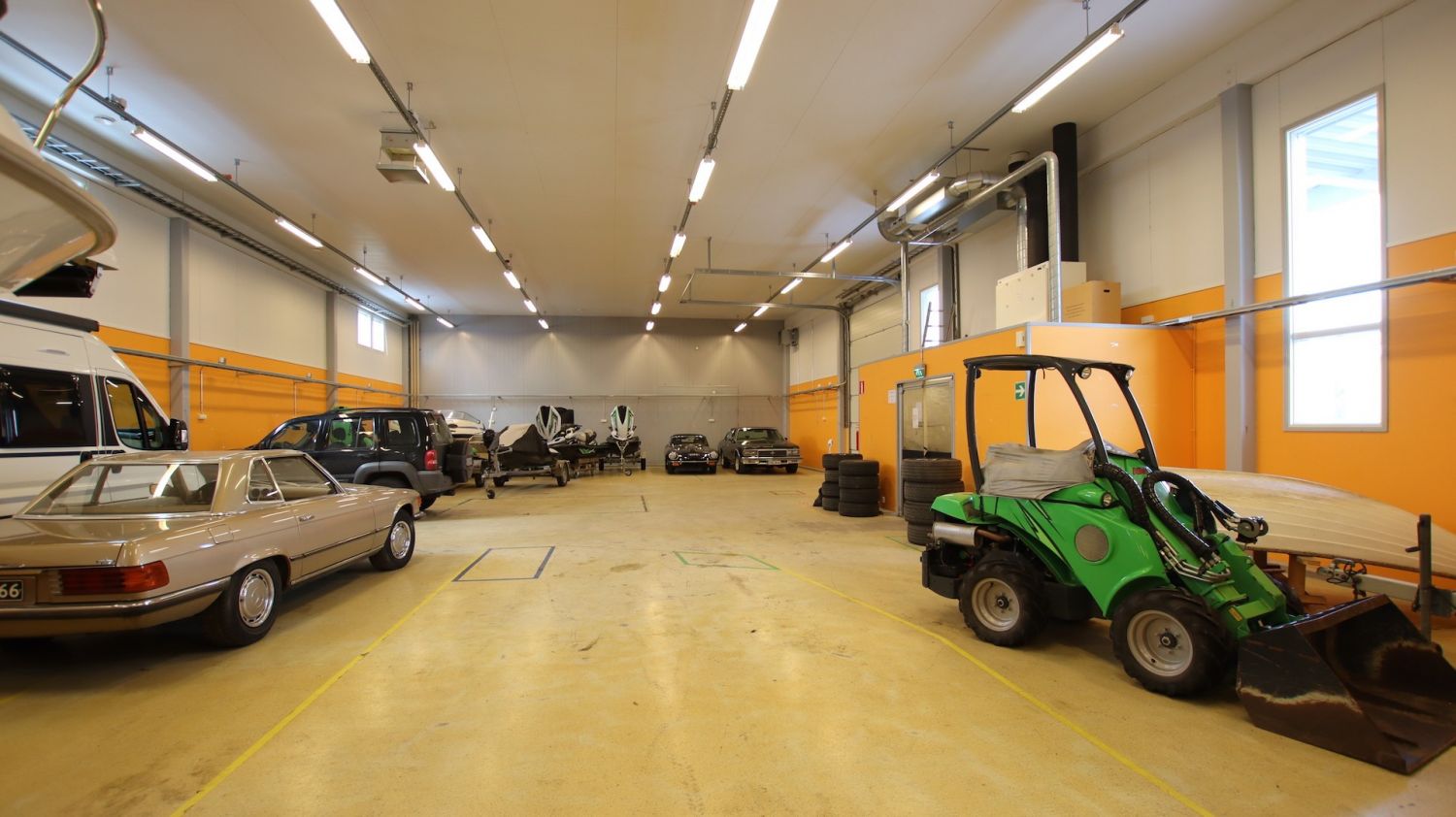 Hallin vapaa korkeus 5,5 metriä, hallissa ison pari-oven lisäksi nosto-ovi, jonka korkeus on 4,5m ja leveys 3,5 m. Hallissa lattialämmitys ja koneellinen ilmanvaihto. Hallissa erillinen toimistohuone sekä siivouskomero. Hallissa ei ole lattiakaivoja.