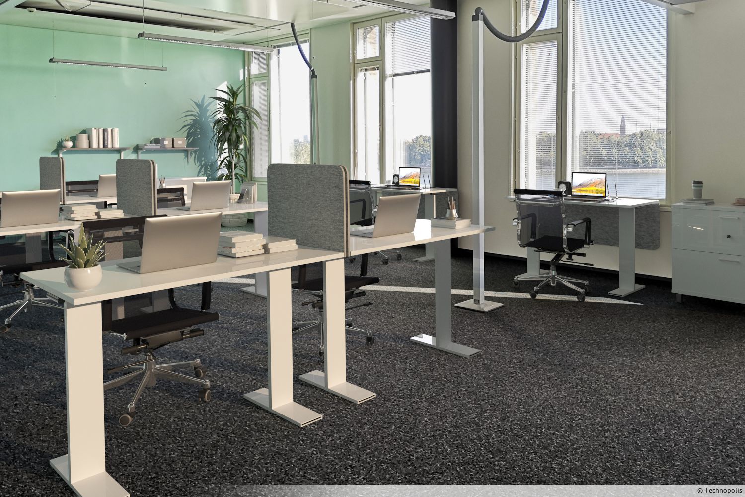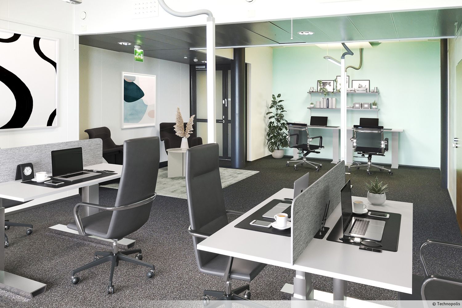Tila on mahdollista vuokrata myös kalustettuna. Saatavilla ovat lisäksi työtilan suunnittelu- ja muuttopalvelut. Ota yhteyttä ja tule tutustumaan paikan päälle.