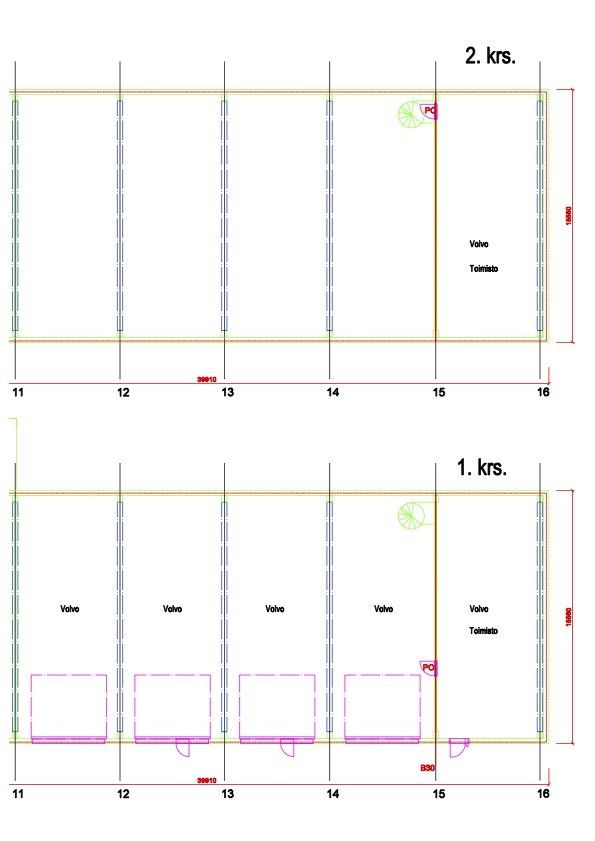 Kokonaispinta-ala on 580m², josta 380 m² on hallitilaa ja 200 m² toimisto- ja sosiaalitiloja kahdessa kerroksessa. Alakerrassa sijaitsevat työnvastaanottotilat ja matala varastotila, yläkerrassa toimisto- ja sosiaalitilat.