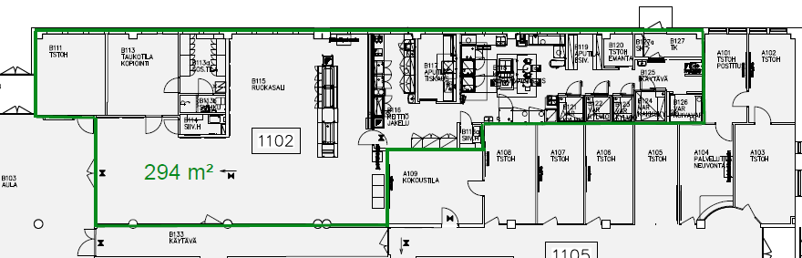 Keittiön laitteet ja välineet kiinteistöyhtiön omaisuutta, joten niistä huoltovastuu kiinteistöyhtiöllä. Erilliskustannuksina sähkö + rasvakaivon tyhjennys.