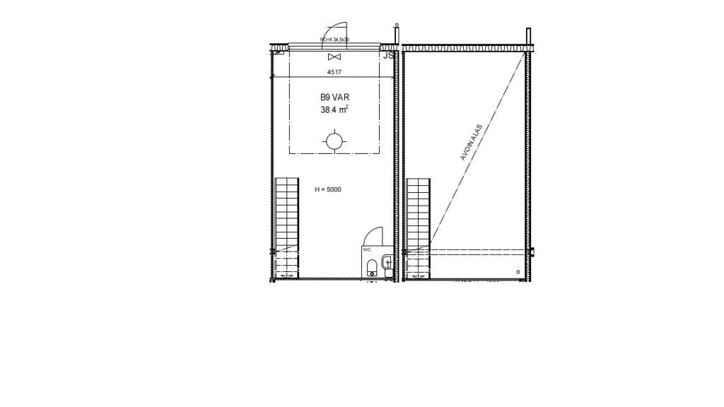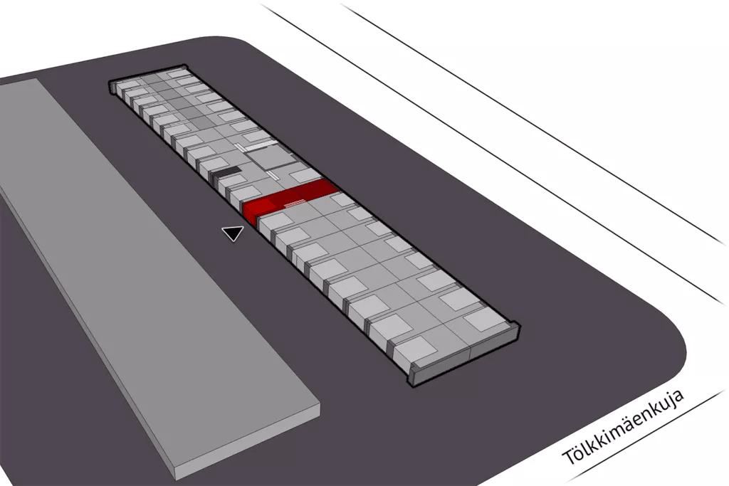 Tilan mitat ovat pituus 8,45 m × leveys 4,50 m × korkeus 5,00 m. Tilan lattiapinta- ala on 38 m² (sisältäen pienen wc- tilan) ja lisäksi tilassa on 27 m² parvi. Tilaan on sähkökäyttöinen nosto-ovi (L 3,45 m × K 3,90 m) erillisellä käyntiovella.
