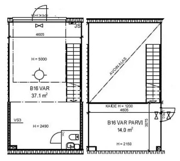 Tilan mitat ovat pituus 8,15 m × leveys 4,60 m × korkeus 5,00 m. Tilan lattiapinta- ala on 37 m² (sisältäen pienen wc- tilan) ja lisäksi tilassa on 14 m² parvi. Tilaan on sähkökäyttöinen nosto-ovi (L 3,45 m × K 3,90 m) erillisellä käyntiovella.