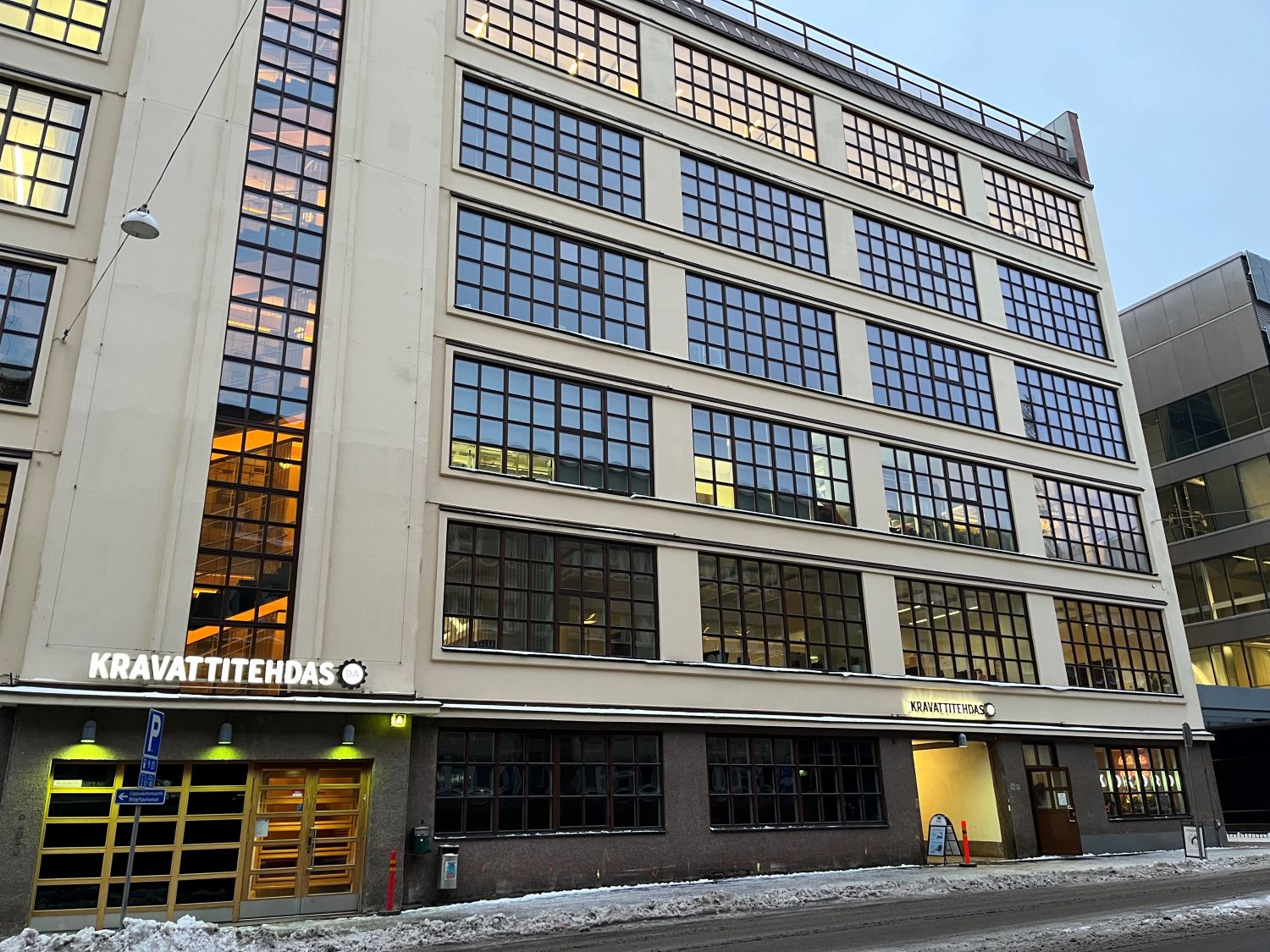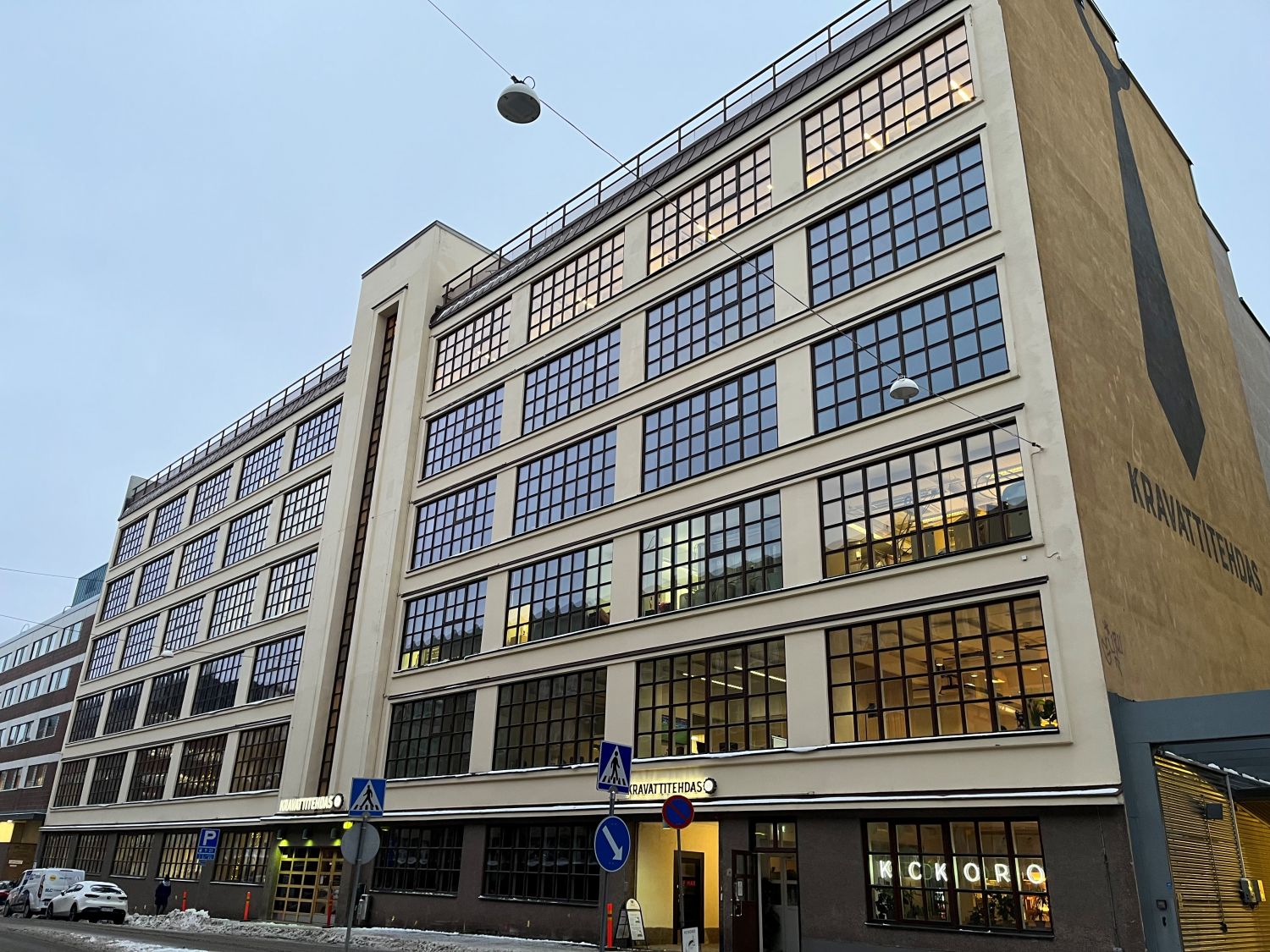 Vuonna 1929 Helsingin Kutomo ja Kravatti Oy:n upouusi pääkonttori ja tuotantolaitos – Kravattitehdas - valmistui Elimäenkadulle Vallilaan. Nyt lähes sata vuotta myöhemmin sen tilat tarjoavat mahdollisuuden monipuoliseen työskentelyyn erinomaisella sijainnilla, historiallisuutta korostavilla puitteilla ja maanmainiolla palveluilla kohtuukustannuksin. Kravattitehtaalla on aulapalveluiden ja herkkulounaan lisäksi käyttäjien vuokrattavissa yhteensä seitsemän erikokoista neuvottelutilaa.