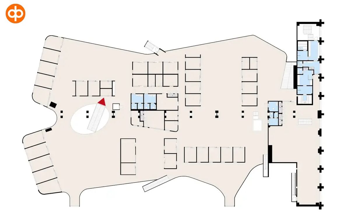 Toinen kerros koostuu avotoimistoalueista, työhuoneista, neuvottelutiloista ja hiljaisista vetäytymistiloista. Pinta-alaa on yhteensä 1 792 m². Kerrokseen kuuluu myös oma saunaosasto. Näyttävä portaikko yhdistää kerrokset toisiinsa.