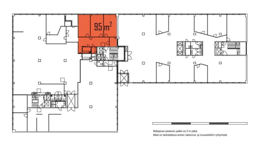 Tämä 95 m² toimistotila sijaitsee kiinteistön 2. kerroksessa. Toimistossa on kolme tilavaa huonetta, pieni varasto, keittokomero ja wc.