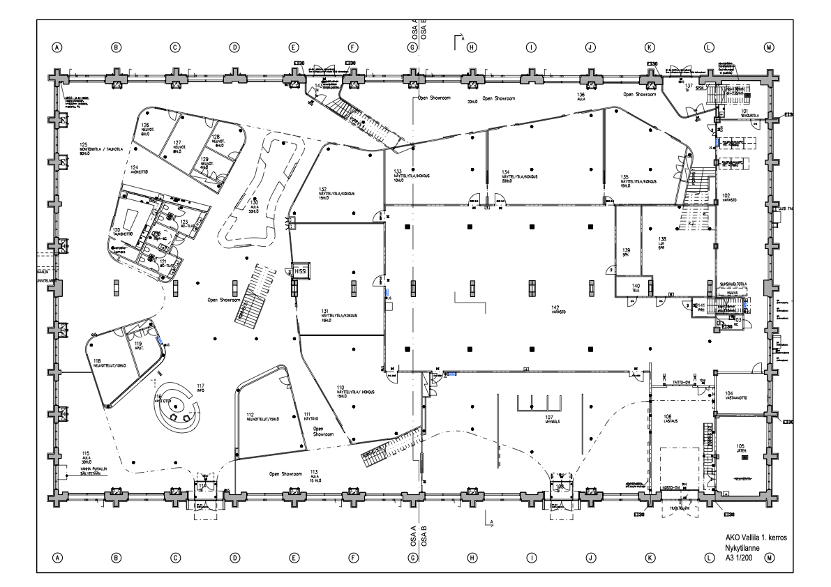 1. kerroksessa (2126 m²) ovat upea aula ja vastaanotto, useita neuvottelutiloja ja showroomeja. Mukana on myös hieno lounge-/monitoimitila. Olemassa oleva Amer Sportsin myymälä on muutettavissa toimistotilaksi.