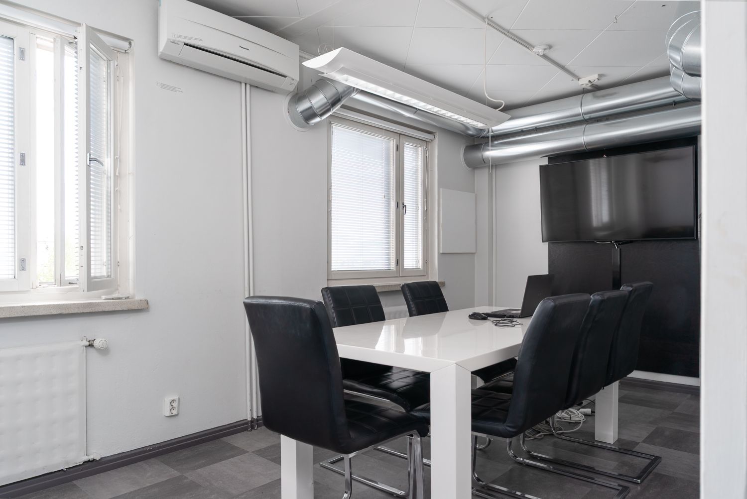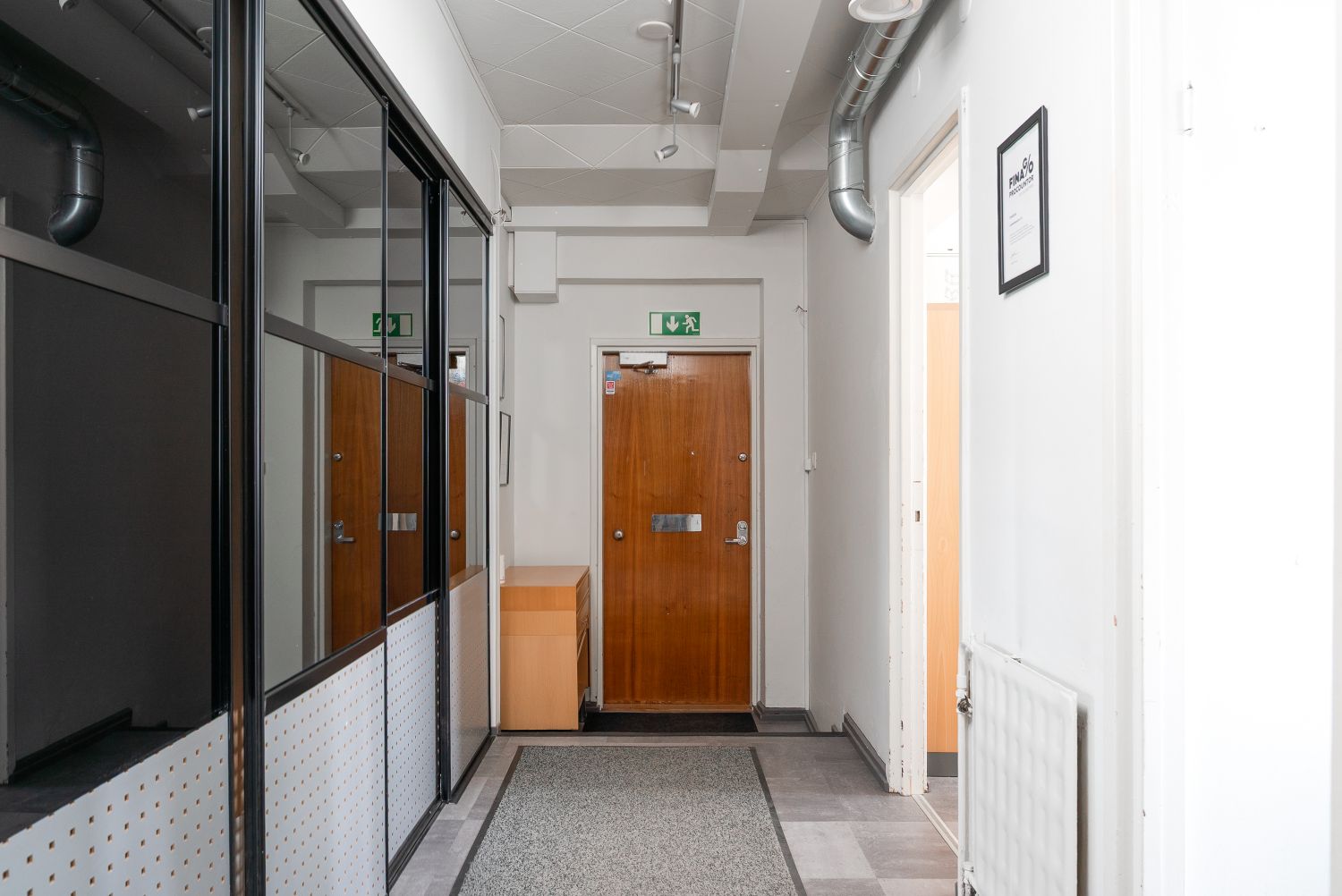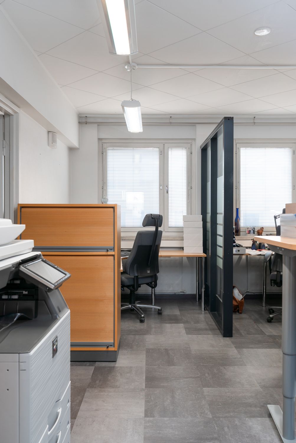 Tämä neljännen kerroksen läpitalon huoneisto sopii monenlaiseen toimintaan. Tilat muuntautuvat helposti niin avotoimistoksi kuin rauhallisiksi työhuoneiksi. Suuret ikkunat tuovat luonnonvaloa koko päivän. Huoneistoon on tehty kattavasti pintaremonttia; lattiat ja seinät on uusittu, ilmanvaihto rakennettu sekä asennettu ilmalämpöpumppu mukavuutta lisäämään.