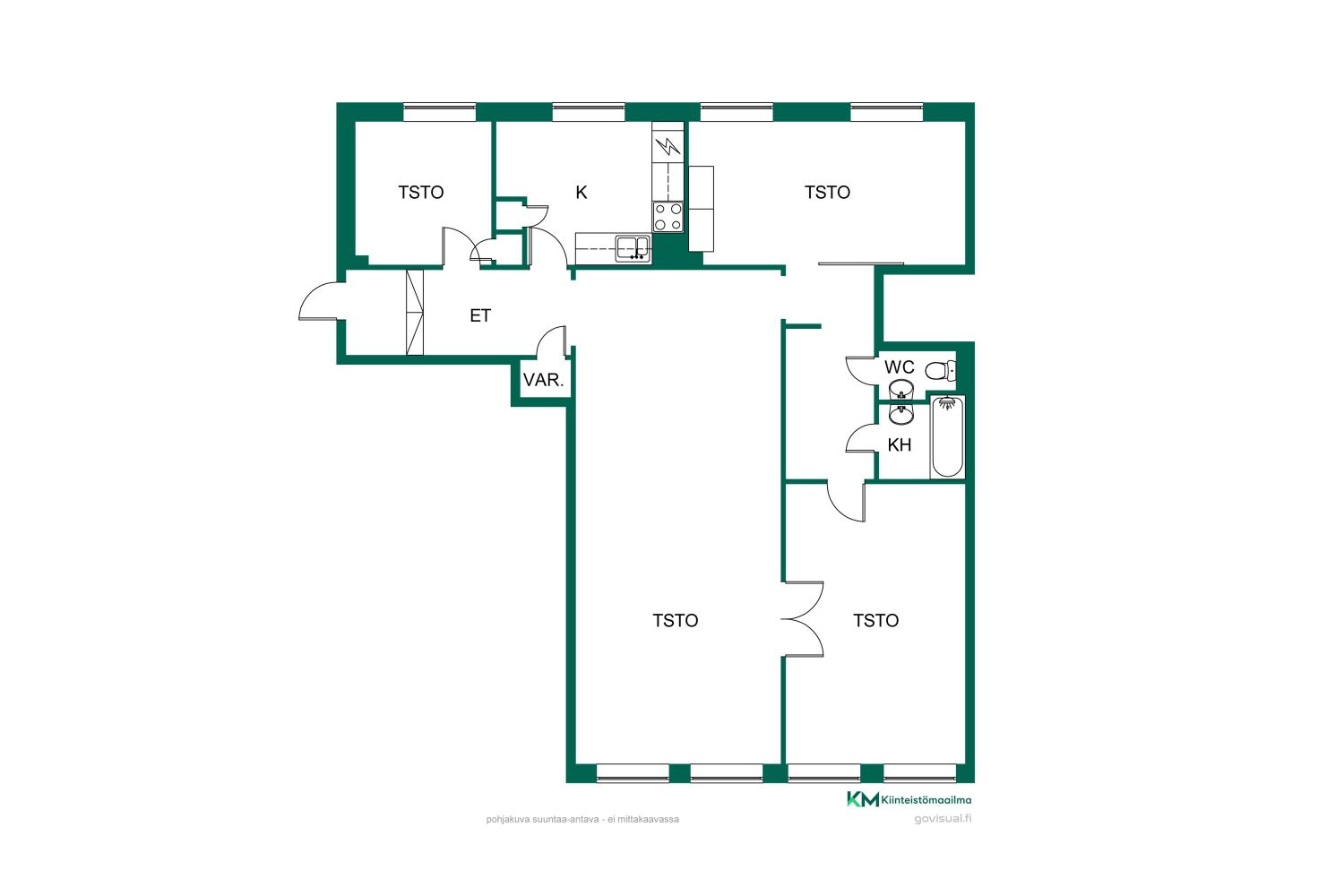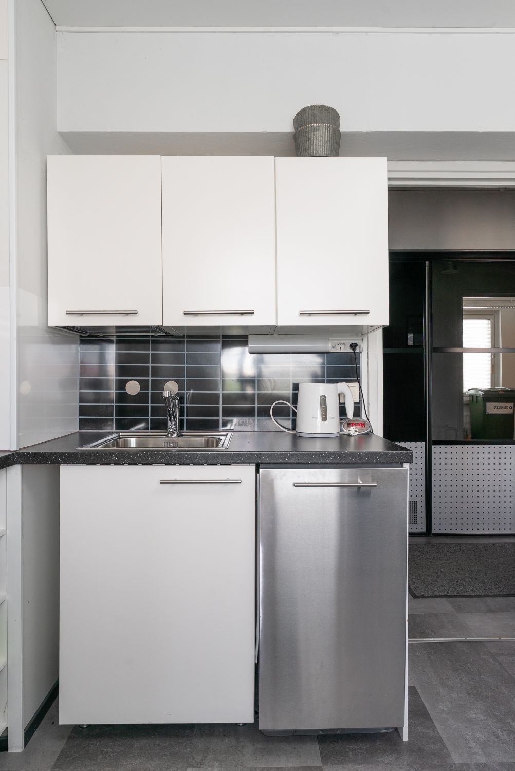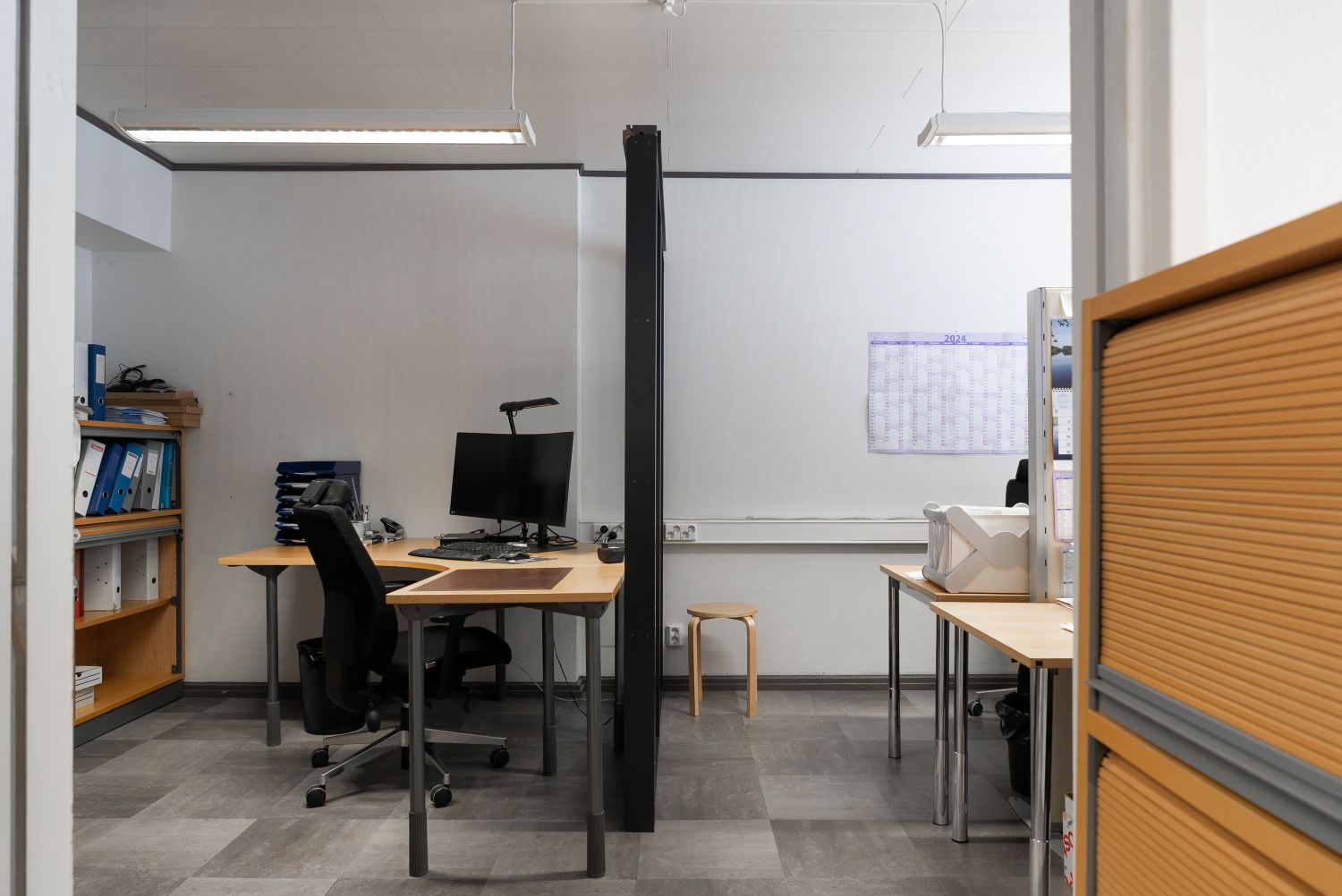 Tämä neljännen kerroksen läpitalon huoneisto sopii monenlaiseen toimintaan. Tilat muuntautuvat helposti niin avotoimistoksi kuin rauhallisiksi työhuoneiksi. Suuret ikkunat tuovat luonnonvaloa koko päivän. Huoneistoon on tehty kattavasti pintaremonttia; lattiat ja seinät on uusittu, ilmanvaihto rakennettu sekä asennettu ilmalämpöpumppu mukavuutta lisäämään.