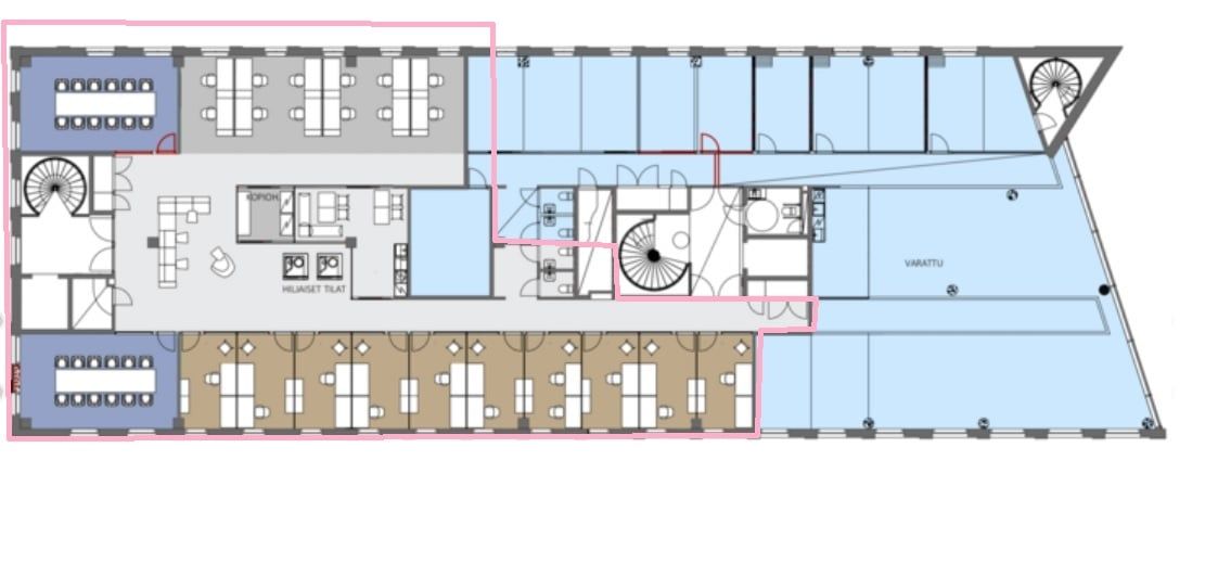 Viimeistä viedään! The Loft Housen viimeinen vapaa tila, kerroksessa 4. Tähän puolikkaaseen toimistokerrokseen saa tilaratkaisusta riippuen työpisteet noin 24-35 henkilön organisaatiolle. ihana industriaalinen henki vaikka uudiskohde onkin. Loppuviimeistely tehdään uuden käyttäjän toiveiden ja tarpeiden mukaan, mm. keittiötä ei ole valittu vielä puolestanne.