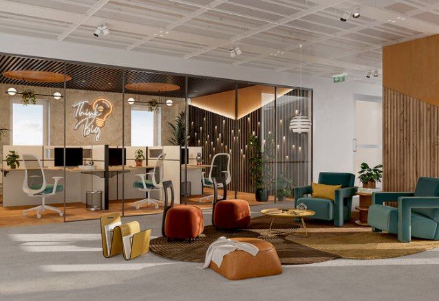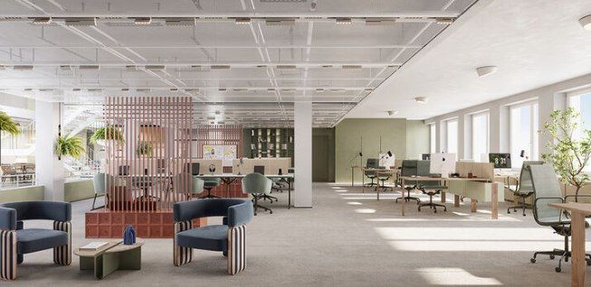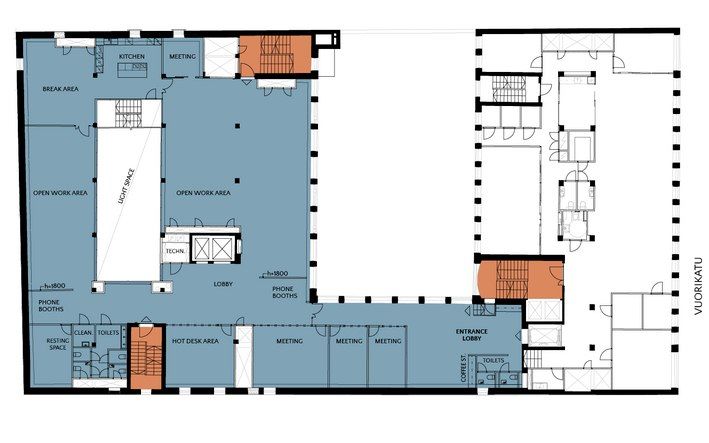 Tilaan on mahdollista sijoittaa työpisteet 40â50 henkilölle. Lisäksi on hyvin tilaa ryhmätyöskentelyyn ja neuvottelutiloihin, mikä tukee monimuotoista työskentelyä. Pohjaratkaisu mahdollistaa toimivan ja tehokkaan työympäristön isommallekin tiimille.