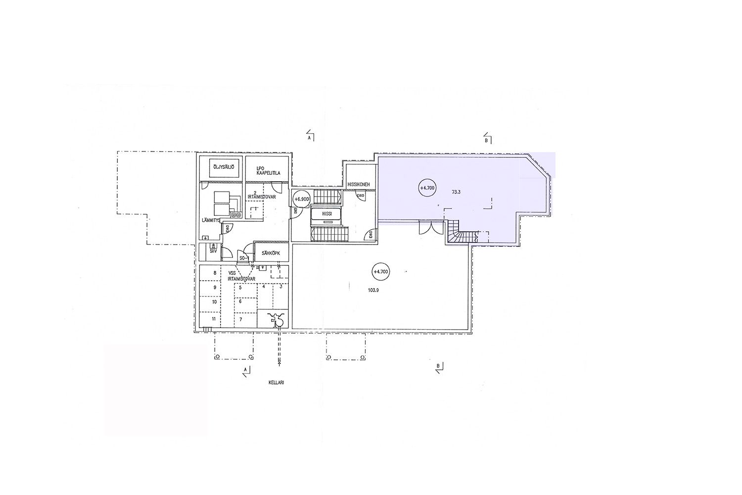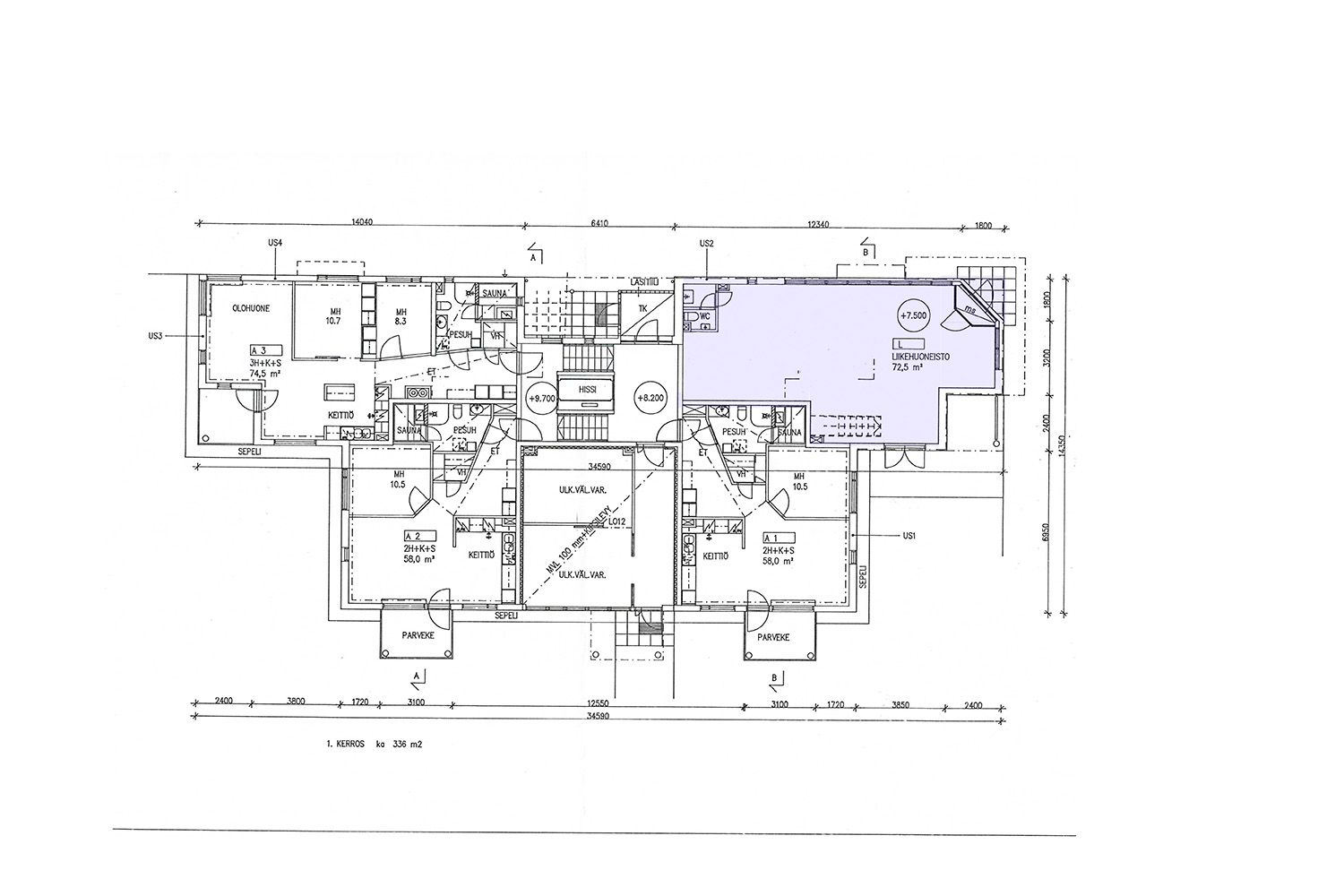 Pinta-alat: Liiketila 72,5 m² ja kellari 73,3 m² + optiona lisää kellaritilaa