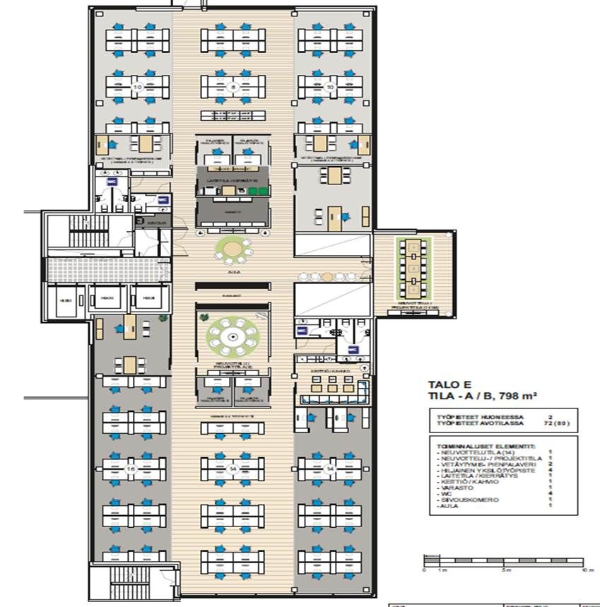 Modernia business park toimistotilaa toisessa kerroksessa . Tilat ovat muunneltavia ja moderneja, hyvin ilmastoituja ja sijoittuneita. Kaikkiin rakennuksiin on pääsy sisäbulevardin kautta.Alueen yrityksillä on käytössään huolto-, kunnossapito- ja vartiointipalveluiden lisäksi erinomaiset tietoliikenneyhteydet, monipuoliset ravintola- ja catering-palvelut, aula- ja toimistopalvelut sekä nykyaikaiset kokous- ja edustustilat. Työntekijöiden käytössä on mm. kuntosali, kampaamo, kosmetologi, pesula, hieroja ja hammaslääkäri. Jokaisessa rakennuksessa on lisäksi omat sosiaaliset tilat suihkuineen Hienot näköalat Tiedonsiirtoluokka E/cat6.