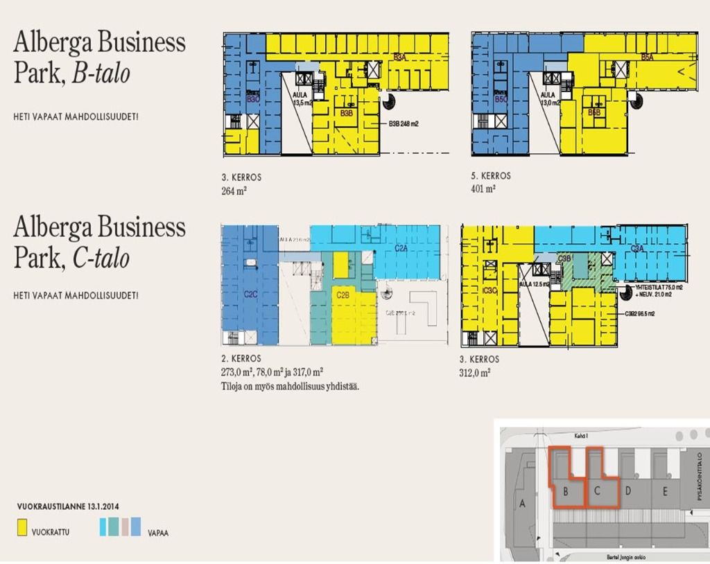 Espoon Leppävaarassa upea koko kerroksen Business Park- toimistotila viidennessä kerroksessa. Upeat , uudet ja valoisat toimitilat Kauppakeskus Sellon ja Leppävaaran juna-aseman vieressä. Arkkitehtinä toiminut Arkkitehtitoimisto Brunow & Maunula Oy ja yleisten tilojen sisitussuunnittelun on toteuttanut dSign Vertti Kivi & Co. Ympäristöystävällisyys huippuluokkaa, kiinteistöllä on BREEAM-ympäristösertfikaatti Kattavat toimitilapalvelut; ravintola, aulapalvelut, kuntosali. Neuvottelutiloja voit vuokrata eri tuntiveloituksella. Ylimmässä kerroksessa edustava saunaosasto. Hyvät julkiset yhteydet, autopaikat talon alla kellarissa ja parkkihallissa