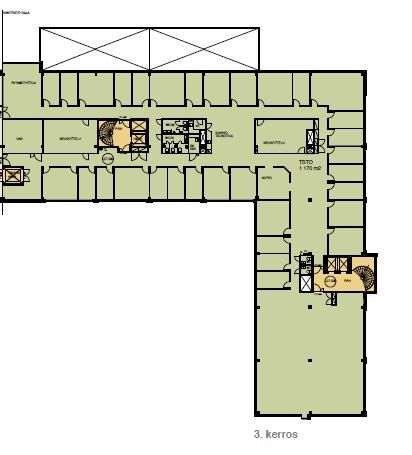 Ylimmässä kuudennessa kerroksessa toimistotilaa. Valmistunut vuonna 1990.
