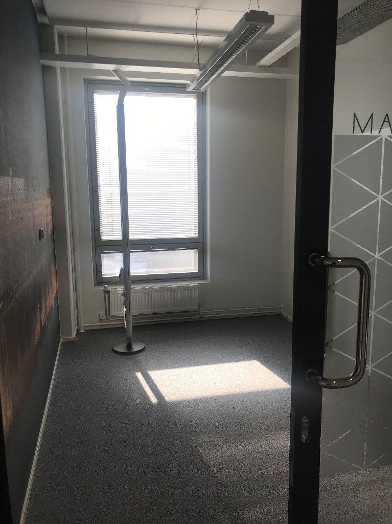 Nykyinen tilojen käyttäjä alivuokraa tilat ja siksi vuokra on houkutteleva, 20 € m2 +alv.
