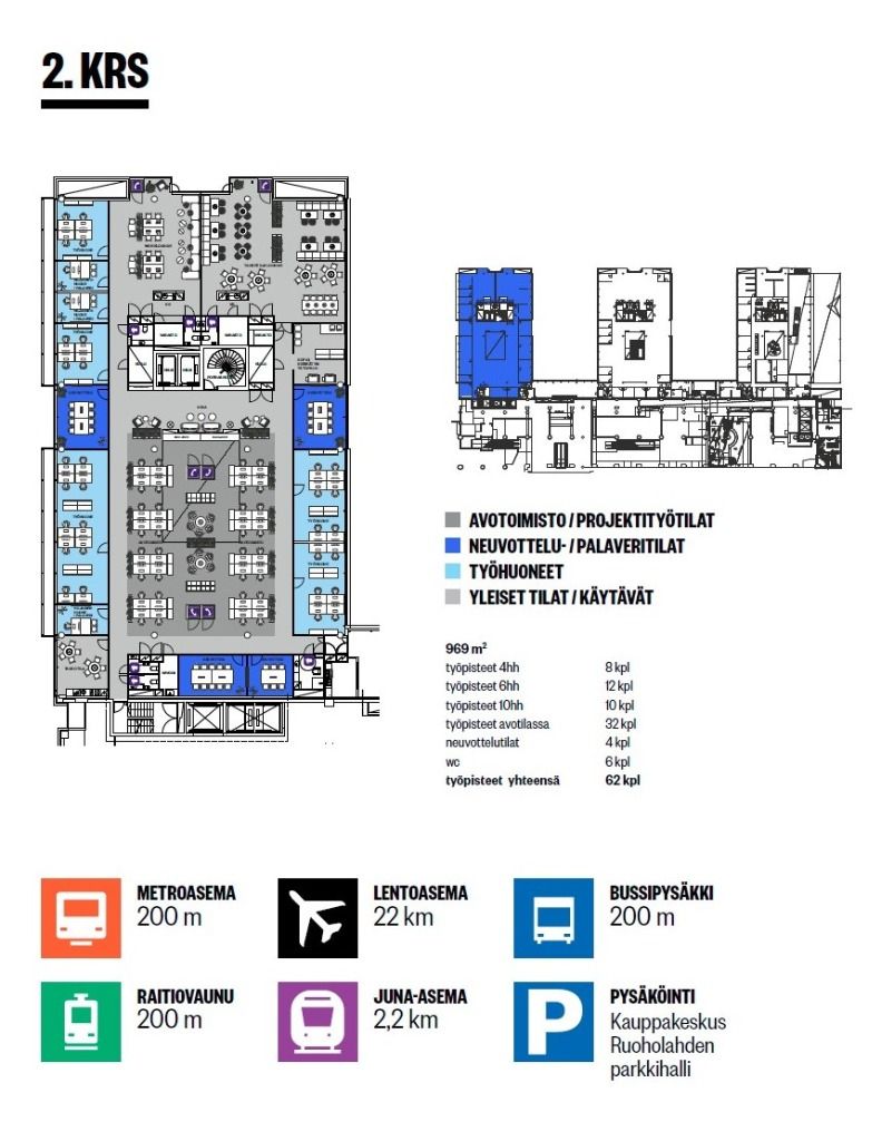 Tämä moderni kohde sijaitsee Ruoholahden paraatipaikalla kaikkien palvelujen äärellä. Kohteeseen on helppo tulla omalla autolla ja julkisilla. Parkkihallissa on tilaa omalle ja vieraiden autoille ja Ruoholahden metroasema on lyhyen kävelymatkan päässä. Kiinteistössä on aula- ja postipalvelu, sekä lounasravintola ensimmäisessä kerroksessa.