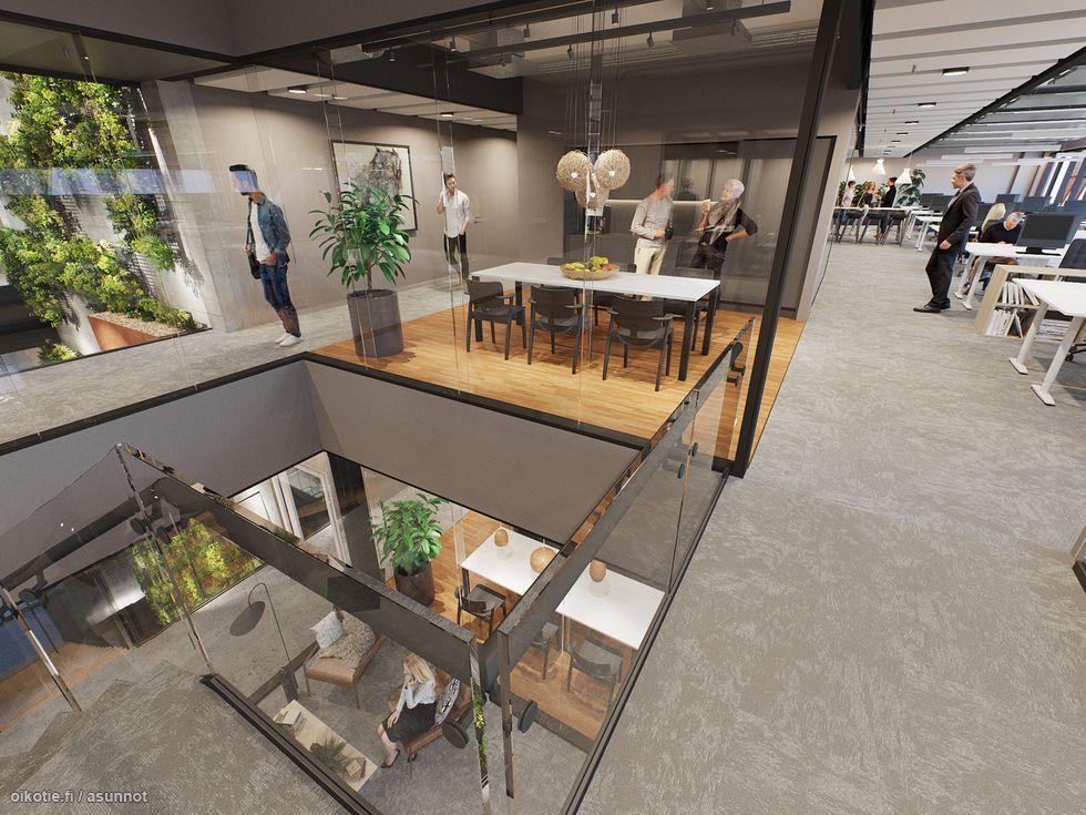 Swing Housen B-talon 4. kerroksen monitilatoimisto. Ikkunat neljään suuntaan. Uudiskohde . Pääkonttoritasoista toimistotilaa Keilaniemessä. Pihalla ja talon alla olevassa autohallissa on tarjolla pysäköintitilaa sekä vieraille, että henkilökunnalle. Swing House on toimistorakennusten sekä hotellin muodostama kokonaisuus Espoon Keilaniemessä.Kohde sijaitsee erinomaisten kulkuyhteyksien varrella. Keilaniemen metroasemalle ja Raide-Jokerin pysäkille kävelymatka on parisataa metriä.