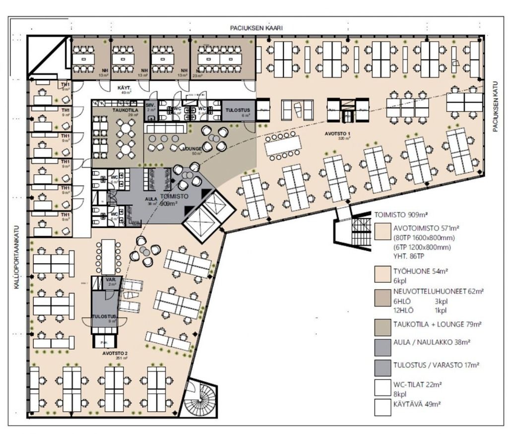 Toimitilaa, johon mahtuu työskentelemään jopa 450 henkilöä. Tilat muokataan ja remontoidaan vuokralaisen tarpeen mukaan. Näyttävän näköinen ja helposti saavutettava kiinteistö sijaitsee Meilahdessa. Kiinteistöön on sujuvat kulkuyhteydet niin julkisilla kulkuvälineillä kuin autolla. Mm. raitiovaunu 4 ja useat bussit pysähtyvät ihan viereen ja saavutettavuus autolla esimerkiksi Espoosta päin on nopea ilman keskustan ruuhkia. Pysäköintitilaa on hallissa ja pihalla. Kiinteistön ylimmässä kerroksessa on vuokrattavissa neuvottelu-/saunatila vuokralaisten käyttöön. Lisäksi viereisissä kiinteistöissä toimii kolme erilaista lounasravintolaa ja päivittäistavarakauppa sijaitsee vastapäätä.
