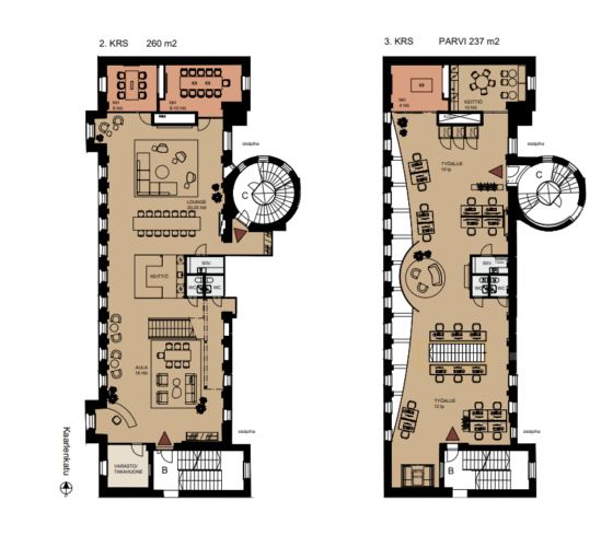 Kokemuksellista toimitilaa Kallion ytimessä. Toinen ja kolmas kerros omalla portaalla.
