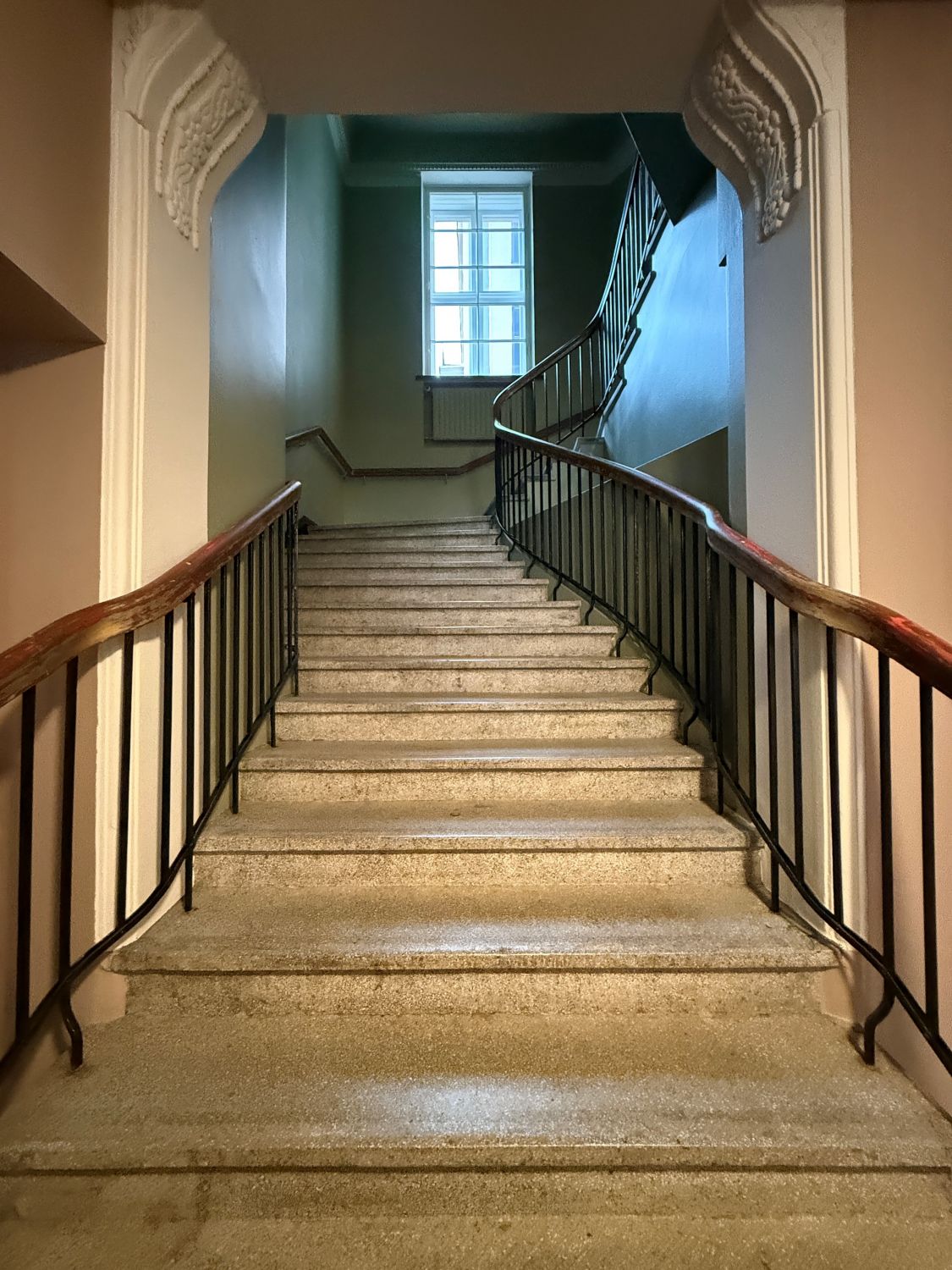 Jos julkisivua katsoo tarkkaan, huomaa ikkunarivistön yksityiskohdissa myös historiallisen kerroksellisuuden – aivan kuin rakennuksella olisi vuosirenkaat.