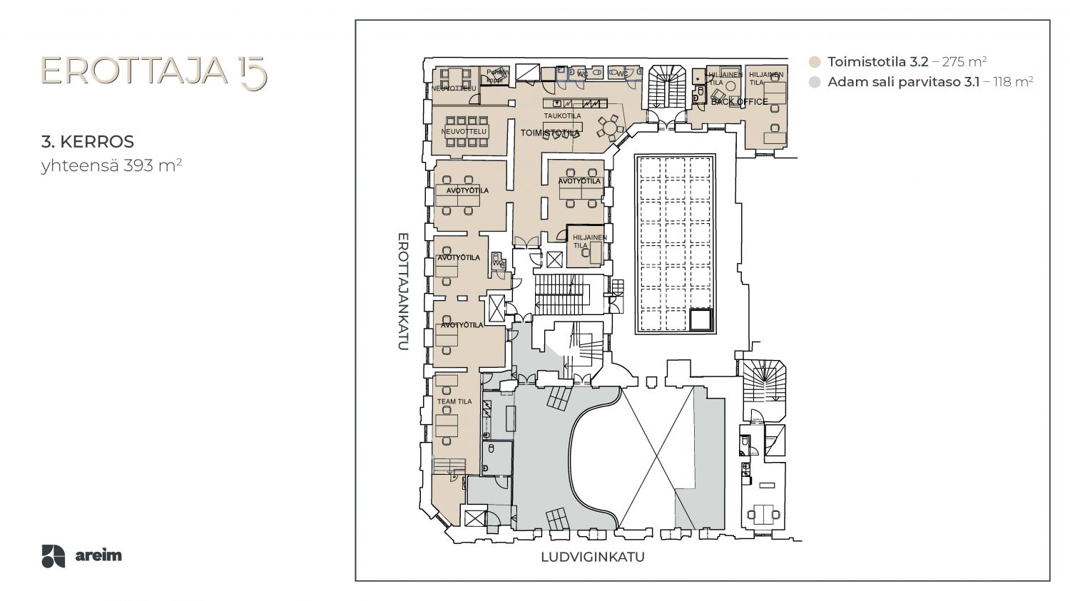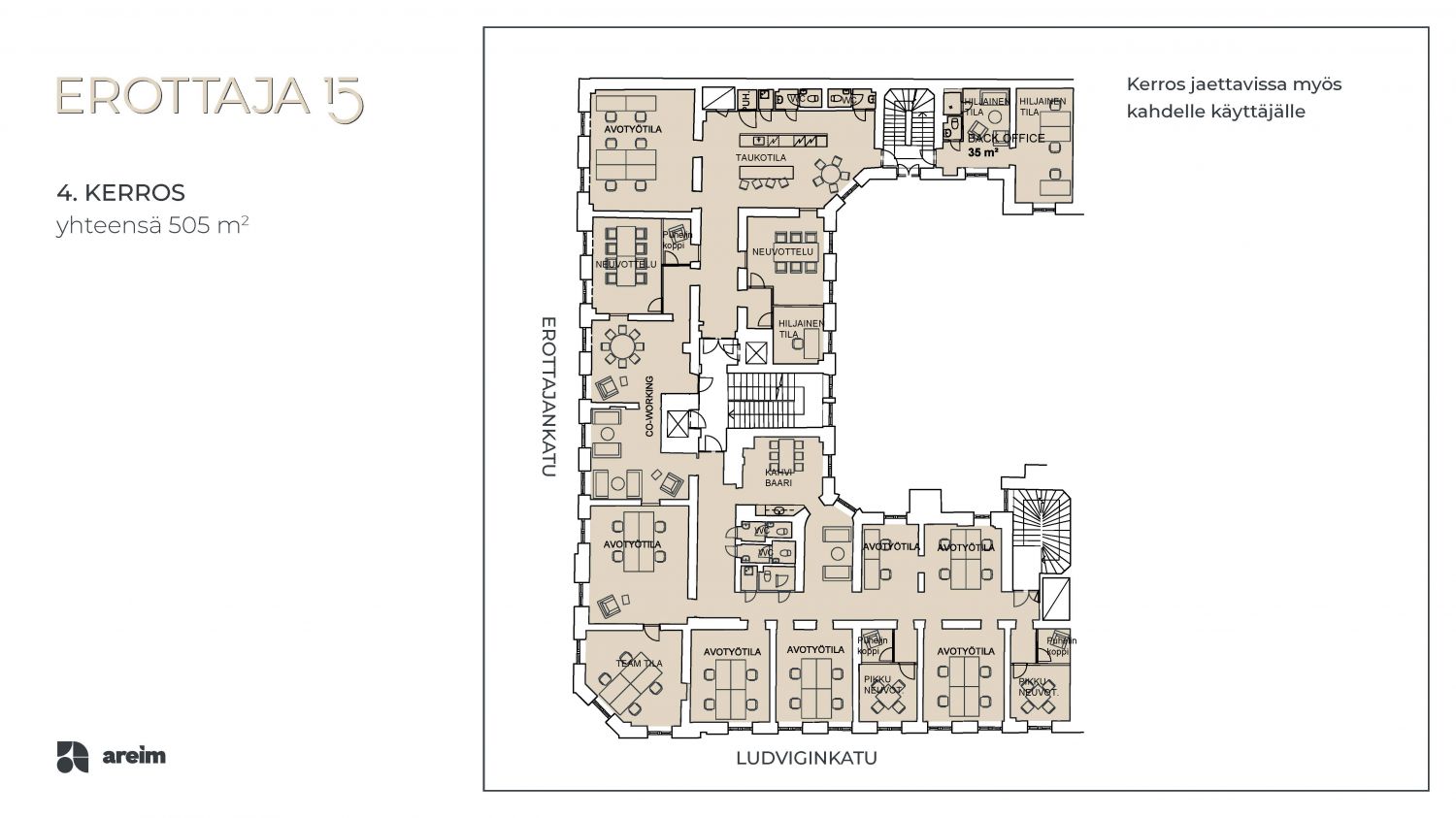 Erottaja 15 on todellinen toimistokomistus Helsingin arvostetuimmassa osoitteessa. Rakennuksen ulkokuori henkii vanhan ajan glamouria ja klassista eleganssia, mutta sen tyylikkäät ja korkeat sisätilat ovat täydelliset nykyaikaiseen toimistotyöskentelyyn. Eri aikakausien kerrostumat näkyvät niin rakennuksen julkisivussa kuin sisätiloissa; joka kerros huokuu hohdokkuutta omalla ainutlaatuisella tavallaan.