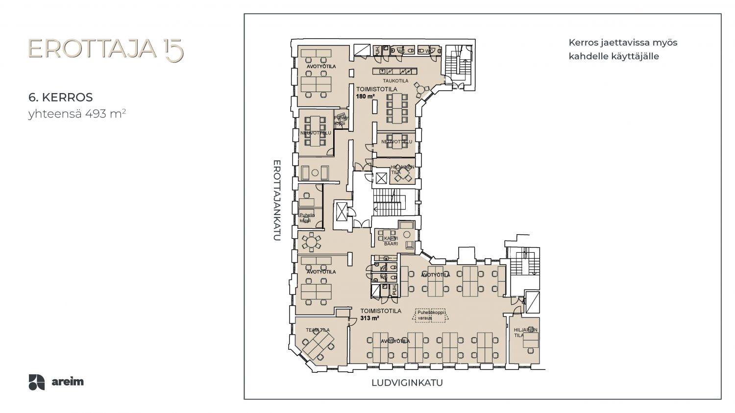 Erottaja 15 on todellinen toimistokomistus Helsingin arvostetuimmassa osoitteessa. Rakennuksen ulkokuori henkii vanhan ajan glamouria ja klassista eleganssia, mutta sen tyylikkäät ja korkeat sisätilat ovat täydelliset nykyaikaiseen toimistotyöskentelyyn. Eri aikakausien kerrostumat näkyvät niin rakennuksen julkisivussa kuin sisätiloissa; joka kerros huokuu hohdokkuutta omalla ainutlaatuisella tavallaan.