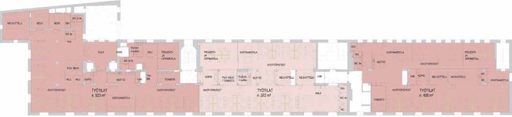 VÄINÖSSÄ VAPAATA TILAA, NELJÄS KERROS. UNIIKKI KIINTEISTÖ. Kuvat ovat yleiskuvia kiinteistöstä. Historiallinen toimistorakennus 1920- luvulta. Osuusliike Elannon entinen pääkonttori. Hallintorakennus nousee maamerkiksi Hämeentien rinteessä. Koristelun kepeys jalostaa kokonaisuutta, fasadimateriaalit, julkisivutiilet ja kuparipelti ovat tasokkaita. Saneeraamme tilat vuokralaisen tarpeisiin sopiviksi yhdessä sisustusarkkitehdin kanssa. Rakennuksessa on tilaa yhteensä 11.200 m2. Alakerroksissa sijaitsevat asiakaspalvelu, liike- ja varastotilat. Keskikerroksissa toimistotilat. Hämeentie on yksi Helsingin vilkkaimmista pääväylistä, joten liikenneyhteydet ovat todella sujuvat ja monipuoliset. Tänne on helppo tulla läheltä ja kauempaakin. Kiinteistön lähellä on kaksi metropysäkkiä: Hakaniemi ja Sörnäinen, molemmat vain noin 500 metrin päässä. Metromatka Hakaniemestä Rautatientorille kestää kaksi minuuttia. Raitiovaunupysäkit ovat aivan rakennuksen vieressä. Busseja ajaa Hämeentietä pitkin jatkuvasti, lähes kerran minuutissa. Bussilla pääsee keskustaan viidessä minuutissa. Myös bussipysäkit löytyvät rakennuksen läheltä. Väinön sijainti on jokaisen työmatkalaisen unelma.